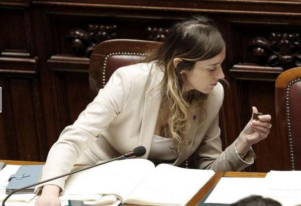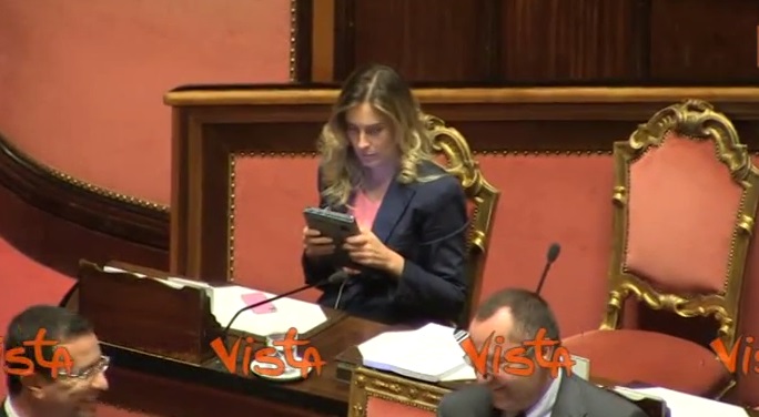 Maria Elena Boschi in Aula col tablet. Passano senatori, lo nasconde VIDEO