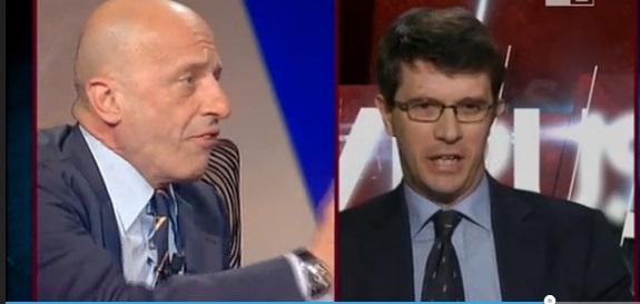 “Briatore è stato condannato per evasione fiscale a Genova” spiega l’editorialista dell’Espresso. E il direttore del Giornale risponde a Malagutti dicendo “sei un mascalzone”. “Il tuo editore è stato in galera” aggiunge Sallusti. E Malagutti replica: “Non parliamo dei tuoi editori. Si facevano le leggi per non finire in galera”.