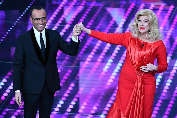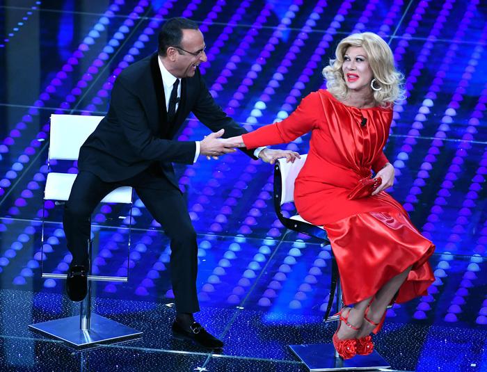 Battute anche su Sanremo: “Un giorno passato qui sono sessant’anni nella vita reale”, l’applaudo a Beppe Vessicchio, indicato come “figlio cresciuto” di Carlo Conti.
