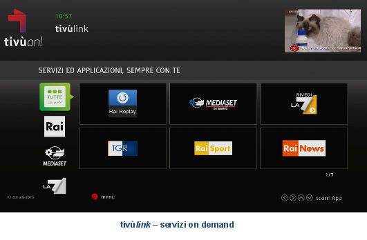 TIVÙLINK– Grazie a tivùon!, l’utente ha anche la possibilità di accedere all’applicazione tivùlink, che si presenta con una schermata iniziale in cui sono fruibili tutti i servizi On demand messi a disposizione da Rai, Mediaset e La7. (Figura 5). La navigazione è semplice e intuitiva.
