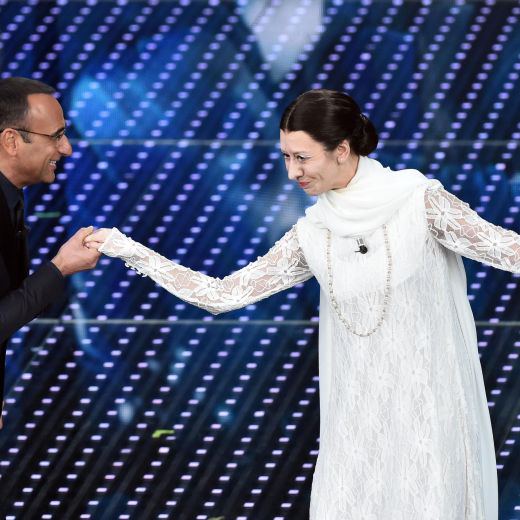 Godereccia martedì al Festival nei panni di Sabrina Ferilli, mercoledì sera la sorprendente Virginia Raffaele incarna in modo perfetto – movenze, plié, atteggiamento altero – Carla Fracci: “E’ un piacere partecipare a questa storica sagra, saluto anche la banda, non potevo dire di no a un conduttore così garbato come lei, signor…?”, dice entrando a Conti. Poi lo invita ad assumere il portamento adatto all’occasione. “Spalle dritte, addome in dentro glutei stretti, porta la conchiglia? allora complimenti!”.