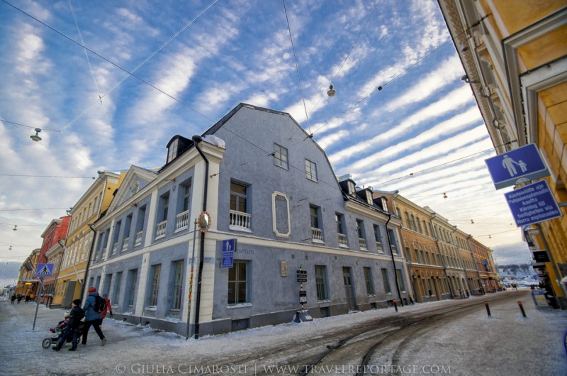 Un’immagine che mi è rimasta impressa di Helsinki e che mi porto dietro tuttora è quando la prima mattina avevo appuntamento con un’amica proprio davanti alla Cattedrale. Erano circa le 8 di un gelido mattino di gennaio, era ancora buio, nevicava e tutto era avvolto dal silenzio e dal bianco. Come se la neve coprisse anche i suoni della città. Le persone -ed io tra esse- camminavano avvolte nei loro cappotti quasi fluttuando sull’enorme piazza come ballerine di un carillon sulle punte, leggere leggere…