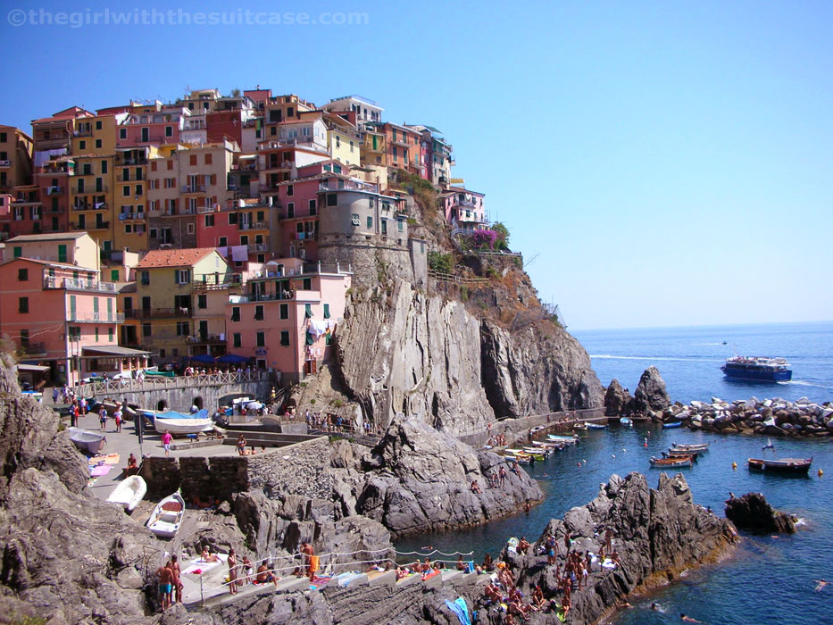 Arrivando dalla stazione di Manarola si attraversa a piedi il tunnel che porta nella via principale di negozietti, focaccerie e ristorantini. Poco più in là si trova la marina, dove alti scogli dal paese scendono in mare: è qui che le navi dei pescatori attraccano e sempre ad una decina di metri da qui i traghetti e i motoscafi che fanno il tour della costa caricano e scaricano ogni giorno decine e decine di turisti. La foto perfetta si scatta allontanandosi un po’ dal cuore del borgo, seguendo il sentiero che porta a Corniglia: le casette colorate e arroccate viste da qui sono qualcosa di magico in qualsiasi ora del giorno, ma forse verso sera danno davvero il meglio di sé. Inoltre, sempre da qui una volta si poteva raggiungere Riomaggiore lungo la Via dell’Amore pagando 6 euro, ma ora è aperto solo un tratto a causa della frana avvenuta durante l’alluvione del 2011.