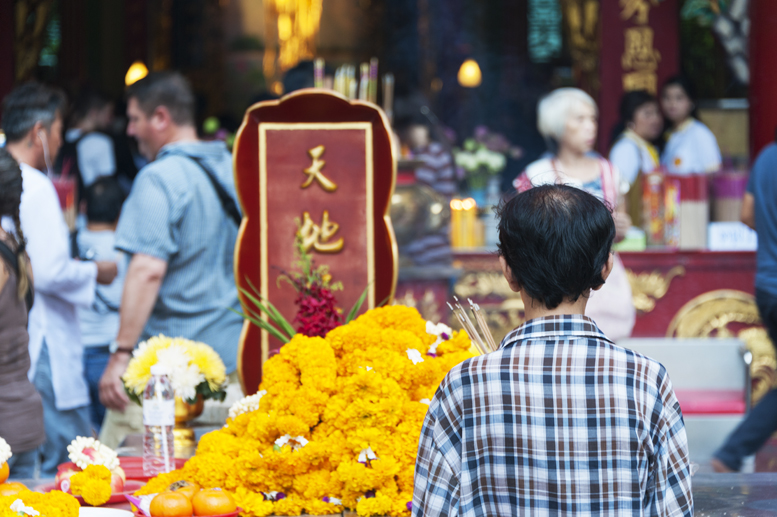 È sempre una zona abbastanza movimentata, ma durante la nostra ultima visita nella capitale Thailandese il piazzale del tempio e le viette attorno erano talmente piene che si riusciva a malapena a passare. Le stradine di Chinatown erano diventate un caleidoscopio di colori, odori e sapori. Donne anziane vestite di bianco, monaci con i loro abiti color zafferano… E poi il suono metallico di un gong, un’antica canzone cinese… E profumi di cibo, arachidi caramellate con lo zucchero, noodles fritti con aglio e peperoncino, triangolini di pasta fritta.