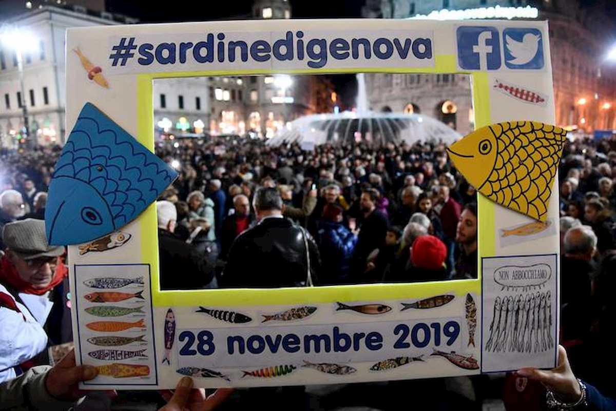 GENOVA – Giovani, anziani, bambini, famiglie, studenti e professionisti con in mano sardine di tutte le dimensioni e di tutti i colori hanno cantato Bella Ciao in piazza a Genova la sera di givedì 28 novembre. Sono state 8 mila le ‘sardine di Genova’. “No al sovranismo, al populismo, no all’odio, no al razzismo, no alla discriminazione” dice Roberto Revelli, un educatore che per primo ha lanciato l’evento su Facebook due settimane fa. Tanti striscioni come quello tenuto in mano dagli organizzatori: “Voi non avete fermato il vento, gli avete fatto perdere tempo” che cita Fabrizio De André.