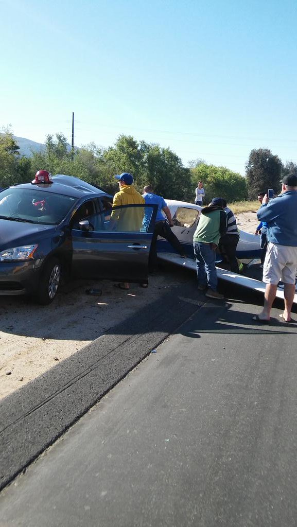 Il Lancair IV ha avuto difficoltà meccaniche e il pilota ha provato a atterrare sulla corsia esterna della strada, ha toccato terra sobbalzando ma ha avuto la sfortuna di trovare la Nissan ferma. L’impatto è stato devastante.
