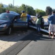 L’auto è una Nissan Altima nera. Era ferma sulla spalletta laterale, una specie di corsia di emergenza non asfaltata che corre sul lato esterno della strada.