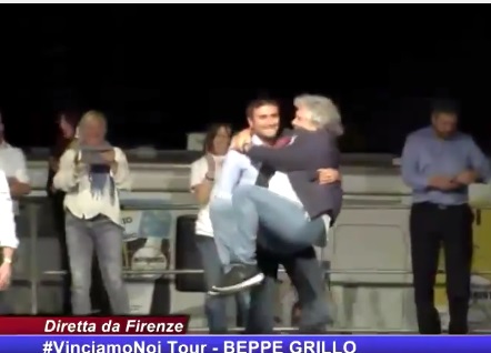 ROMA – Alessandro Di Battista come Enrico Berlinguer e Roberto Benigni. Almeno nella forma. E’ successo a Firenze, durante un comizioย del Movimento 5 Stelle: Di Battista ha preso in braccio Grillo citando quel famoso abbraccio tra Berlinguer e Benigni.