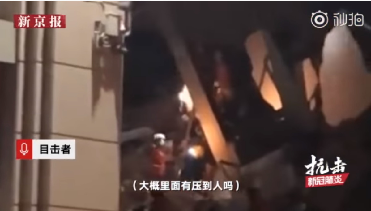 Cina, crolla hotel Xinjia quarantena coronavirus: in 70 intrappolati (Frame da YouTube)