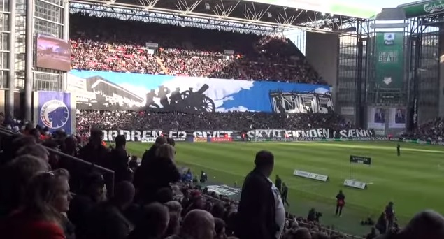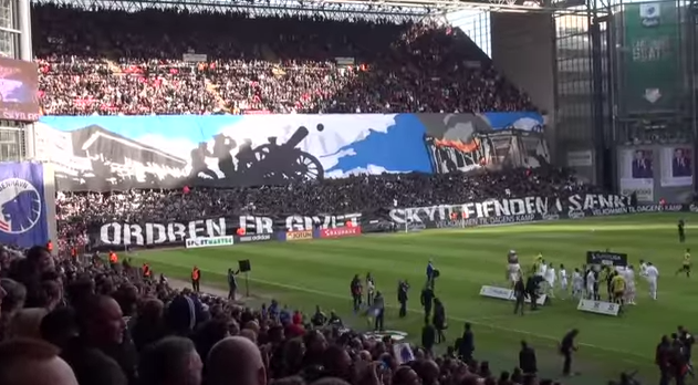 ROMA – In molti l’hanno già ribattezzata come la più bella coreografia di sempre. E’ quella dei tifosi del Copenhagen (rivali della Juventus in Champions League) al Parken Stadium durante il derby con il Brondby di domenica 4 maggio. Una coreografia animata dove viene simulata la distruzione dello stadio dei rivali a forza di cannonate.