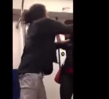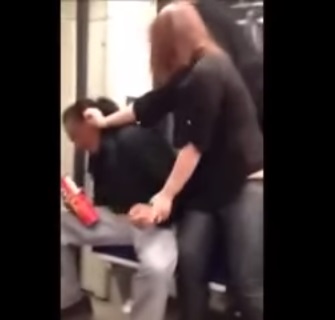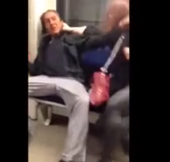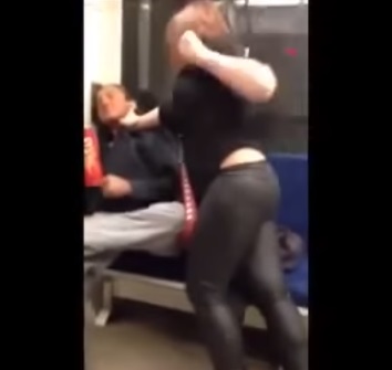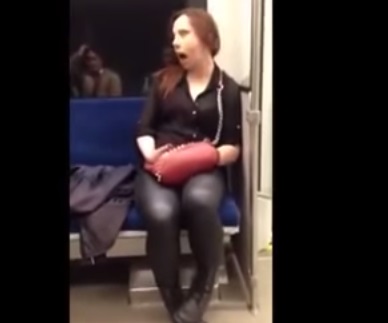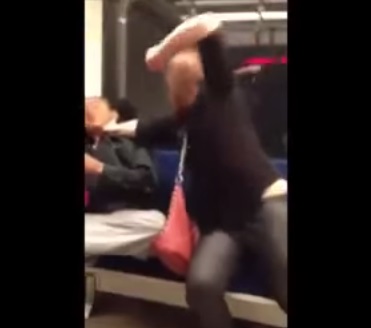 La donna posseduta sferra un pugno al vicino sul treno (YouTube)
