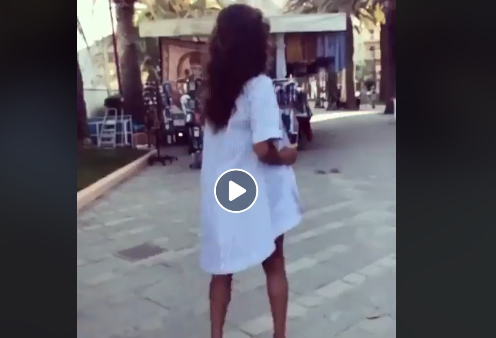 Il video è stato pubblicato sui canali social della Folliero e mostra l’ex annunciatrice che divertita passeggia per strada. Emanuela si mostra di spalle, ma poi all’improvviso si gira e sorridente apre la camicia bianca lasciando in bella vista il décolleté incorniciato da un costume a righe bianche e nere annodato sul davanti.