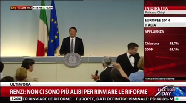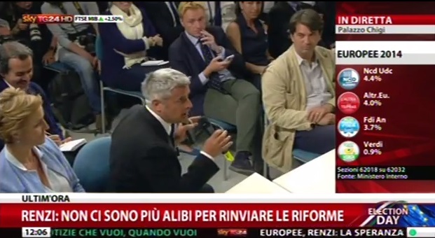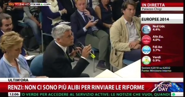 ROMA – “T’ha chiamato Fonzie, ebetino. Non essere vendicativo, glie voi dì ‘na parola bella a Beppuccio nostro dopo ‘sta mazzata tra capo e collo?” domanda Enrico Lucci, l’inviato delle Iene, a Matteo Renzi, in conferenza stampa a Palazzo Chigi dopo l’election day di ieri, domenica 25 maggio, per le europee.