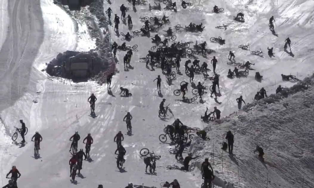 ROMA – Centinaia di ciclisti si sono trovati a terra mentre scendevano ad alta velocità lungo un ghiacciaio in Francia. L’impressionante video mostra il risultato della gara di downhill “Mountain of Hell” che si tiene ogni anno nel complesso sciistico Les Deux Alpes.