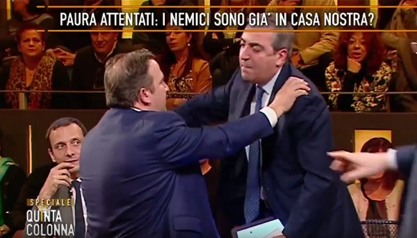 ROMA – Gasparri non riesce a far tacere Luca Telese, che lo aggredisce in diretta tv, gridandogli “Cretino, vatti a disintossicare” e ci vuole l’intervento fisico del conduttore, Paolo Del Debbio, durante il programma “Quinta Colonna” su Rete 4. Del Debbio ha quasi sollevato di peso Telese, che si era avvicinato minacciosamente a Gasparri, e lo ha ricondotto al suo posto.