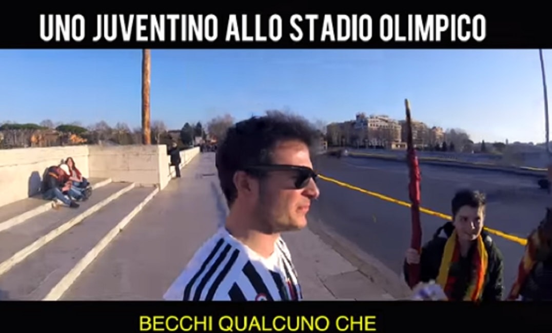 ROMA – Cosa succede se una persona va allo stadio con la maglietta della Juve, quando in campo gioca la Roma? Il comico Giacomo Carolei, conosciuto su YouTube con l’account “Ciao belloni”, ha deciso di sfilare nei dintorni dello stadio Olimpico di Roma con la maglia della Vecchia Signora. Le reazioni non sono state molto cortesi: molte persone che stanno fuori lo stadio per vendere magliette ed altri gadget, consigliano vivamente a Carolei di cambiare strada per il suo bene.