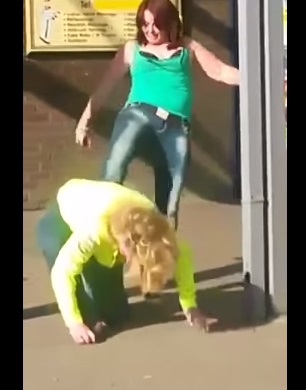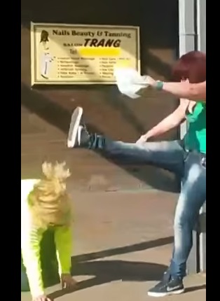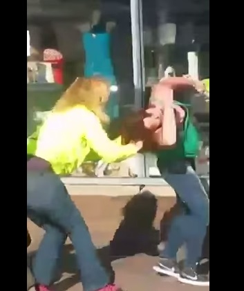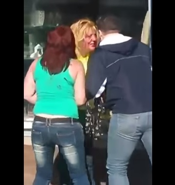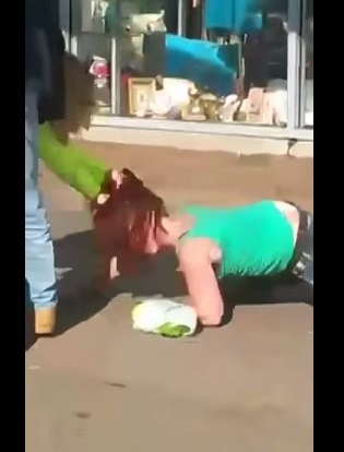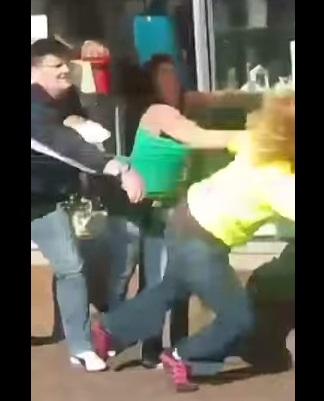 Calci, pugni, schiaffi davanti ai passanti, che intervengono soltanto dopo alcuni minuti per sedare i bollenti spiriti. La donna con la felpa gialla ha, come mostra il filmato, il viso tumefatto. Il video, della durata di 1 minuti e 47 secondi, è diventato virale su YouTube. I tre alla fine sono stati arrestati.