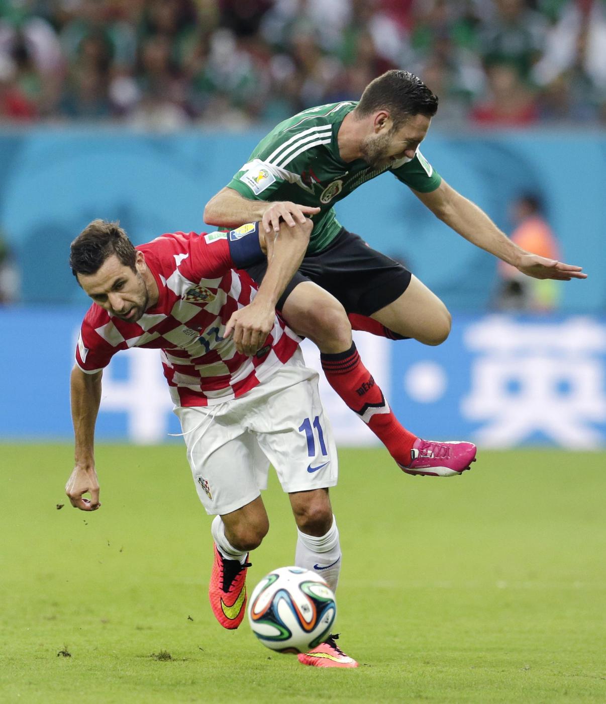** I GOL ** – 27′ st: Rafa Marquez raccoglie di testa un angolo dalla sinistra di Hector Herrera e insacca, anticipando Corluka e battendo Pletikosa. – 31′ st: il ‘Chicharito’ Hernandez parte in contropiede e serve sulla destra Peralta, che fa pervenire a Guardado il pallone dalla parte opposta e l’attaccante del Messico non perdona. – 37′ st: Hernandez raccoglie un angolo dalla destra, sfiorato dalla testa di Marquez che vola alto, e insacca sul secondo palo. – 42′ st: bella triangolazione Perisic-Rakitic, conclusa dal primo con un tiro rasoterra a incrociare, da sinistra verso destra, che supera Ochoa.
