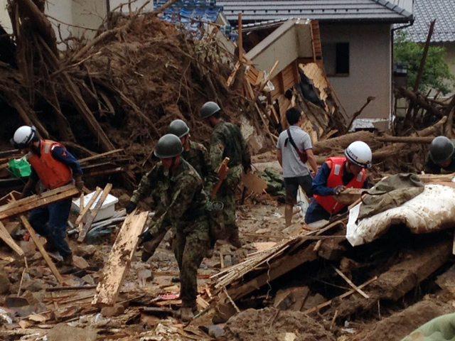“Si tratta di piogge senza precedenti e di una grande catastrofe”, ha dichiarato il primo ministro giapponese Shinzo Abe, che ha subito interrotto le sue vacanze. Le frane hanno sorpreso nella notte gli abitanti di alcune case, letteralmente inghiottite dal terreno. Fra i morti figurano anziani e almeno due fratellini di 2 e 11 anni.