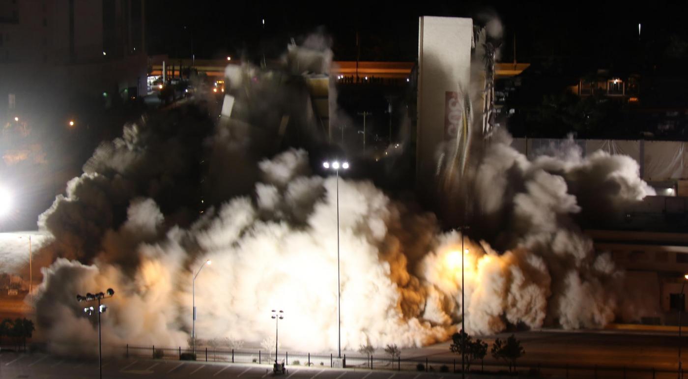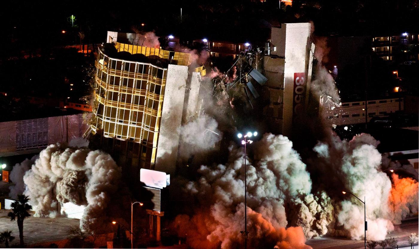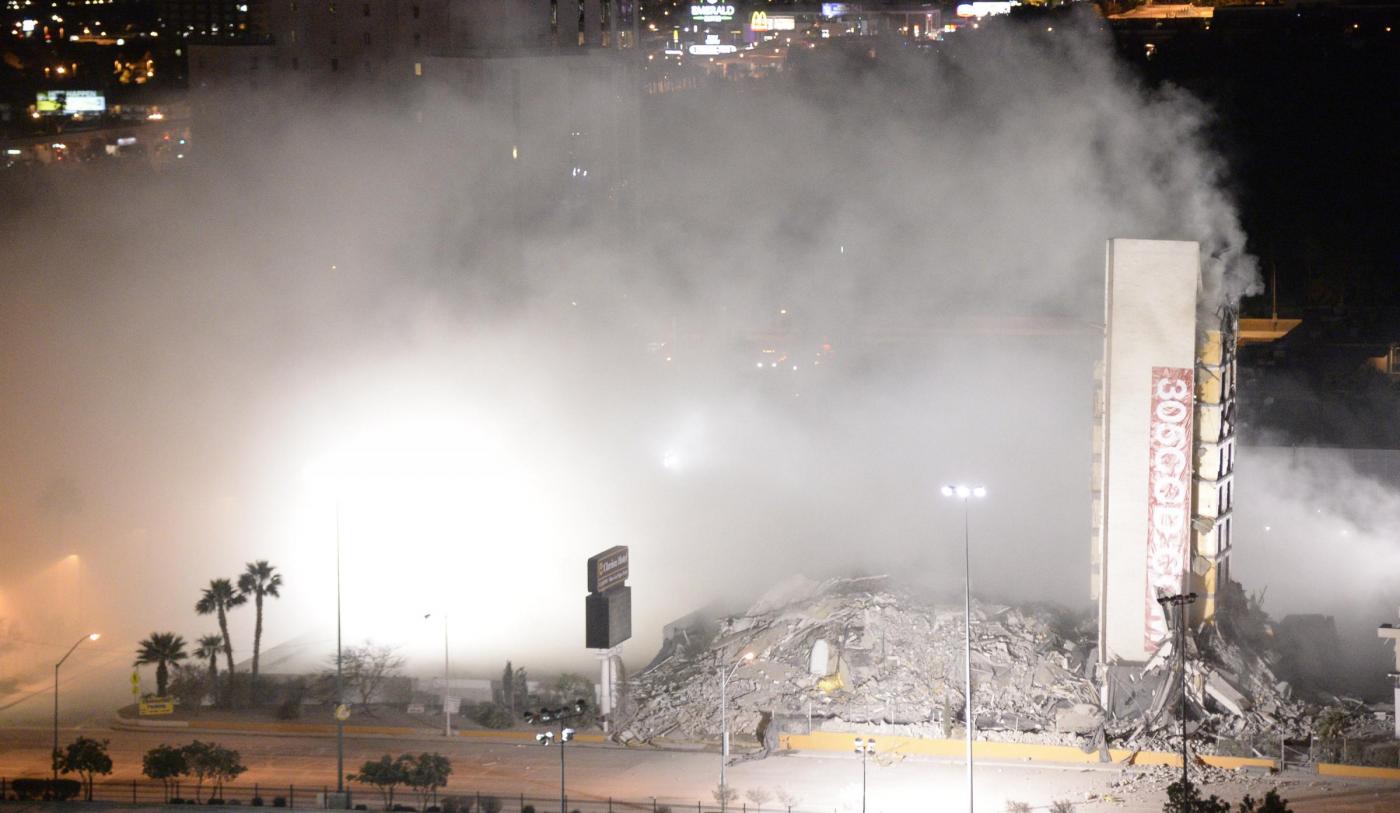 LAS VEGAS – Demolito a Las Vegas l’Hotel Calrion, una struttura da 12 piani e 200 camere, costruita nel 1970. Precedentemente noto come Debbie Reynolds, Greek Isles, Paddlewheel, Royal Americana e Royal Inn, questo albergo una cui porzione è rimasta in piedi per scelta, ora appartiene alla storia. Il nuovo proprietario Lorenzo Doumani, ad ottobre ha infatti sborsato ben 22.5 milioni di dollari ed ha intenzione di erigere un resort multi-funzionale senza gioco d’azzardo.