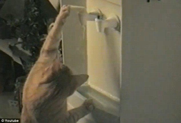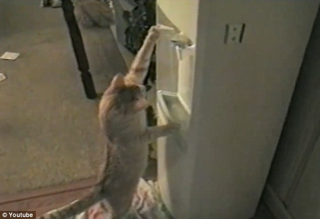 ROMA – Anche i gatti d’estate hanno caldo. Uno di loro di nome Peaches, ha così trovato il modo di azionare una macchina per refrigerare l’acqua.