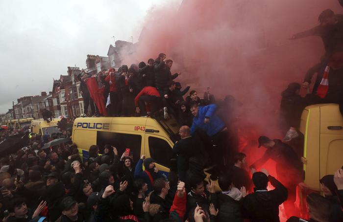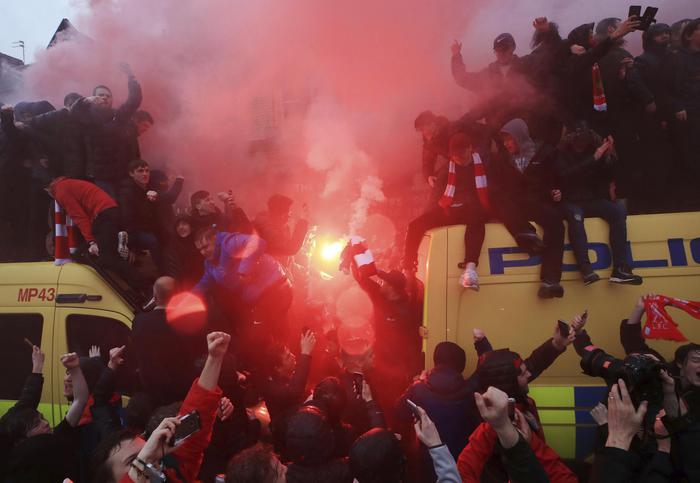 ![Soccer fans light flares and clamber atop Police vans before their Champions League, Semi Final First Leg soccer match at Anfield in Liverpool, England, Tuesday April 24, 2018. (Peter Byrne/PA via AP) [CopyrightNotice: PA Wire]](https://archivio.blitzquotidiano.it/wp-content/uploads/2018/04/liverpool-roma-scontri-3-110x110.jpg)