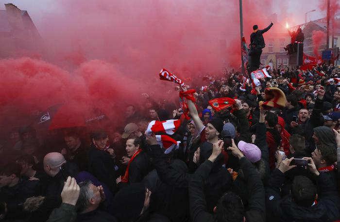 ![Smoke from flares engulfs some soccer fans as they gather ahead of their Champions League, Semi Final First Leg soccer match between Liverpool and Roma, at Anfield in Liverpool, England, Tuesday April 24, 2018. (Peter Byrne/PA via AP) [CopyrightNotice: PA Wire]](https://archivio.blitzquotidiano.it/wp-content/uploads/2018/04/liverpool-roma-scontri-4-110x110.jpg)