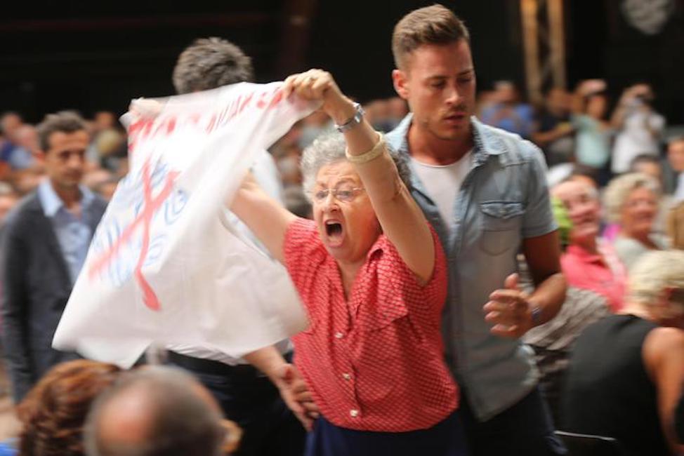 Una donna contesta Matteo Renzi alla festa provinciale dell'Unità di Bologna