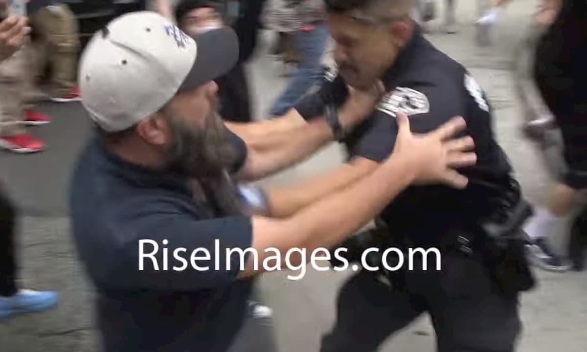 Nel video, le immagini della polizia circondata da manifestanti a Los Angeles. Un agente prova ad arrestare un uomo, ma viene accerchiato e picchiato dalla folla, fino a che non è costretto a lasciar andare il giovane che voleva ammanettare.