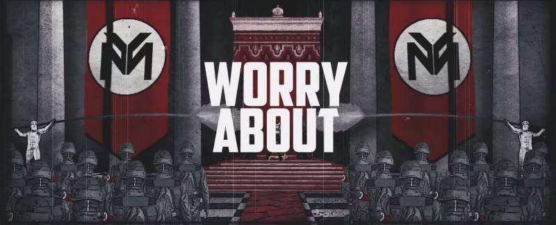Intorno a lei appaiono alcuni simboli del Terzo Reich in versione cartone animato come gli squadroni armati, gli edifici con l’insegna “YM” (“Young Money ” è il nome della sua etichetta discografica) che sostituiscono le svastiche e i grandi raduni in uniforme nazista.
