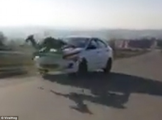 All’improvviso però, la sua corsa si interrompe: il giovane centra in pieno un’auto che sta transitando in strada. Le immagini sono state girate il 12 marzo da Viral Hog, canale YouTube specializzato in imprese del genere, ed è stato ripreso da diversi siti tra cui Buzzfeed e il Daily Mail.