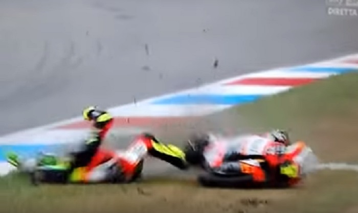 ASSEN – Lorenzo Baldassarri, bruttissima caduta durante le qualifiche del Gp d’Olanda nella classe Moto2 ad Assen....