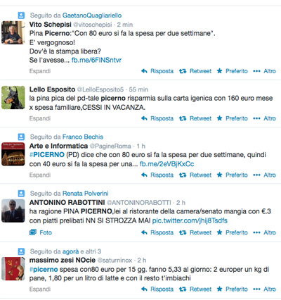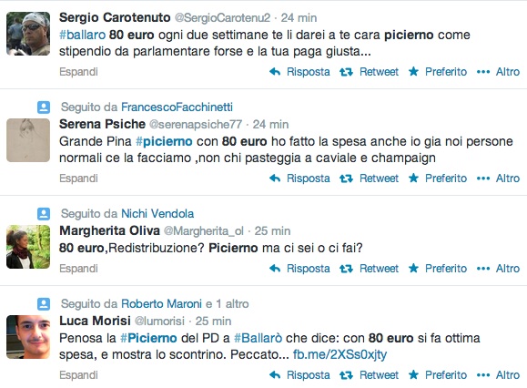 Tutto era cominciato la scorsa settimana: durante un’intervista al canale tv di Fanpage.it, a proposito del bonus Irpef da 80 euro per lavoratori dipendenti e assimilati, la capolista Pd per la circoscrizione Italia meridionale aveva detto: “Chi dice che è troppo poco non conosce evidentemente le condizioni reali della vita delle persone, perché 80 euro al mese significa poter andare a mangiare due volte fuori, significa poter fare la spesa per due settimane, significa insomma assicurare un po’ d’ossigeno alle famiglie italiane”.