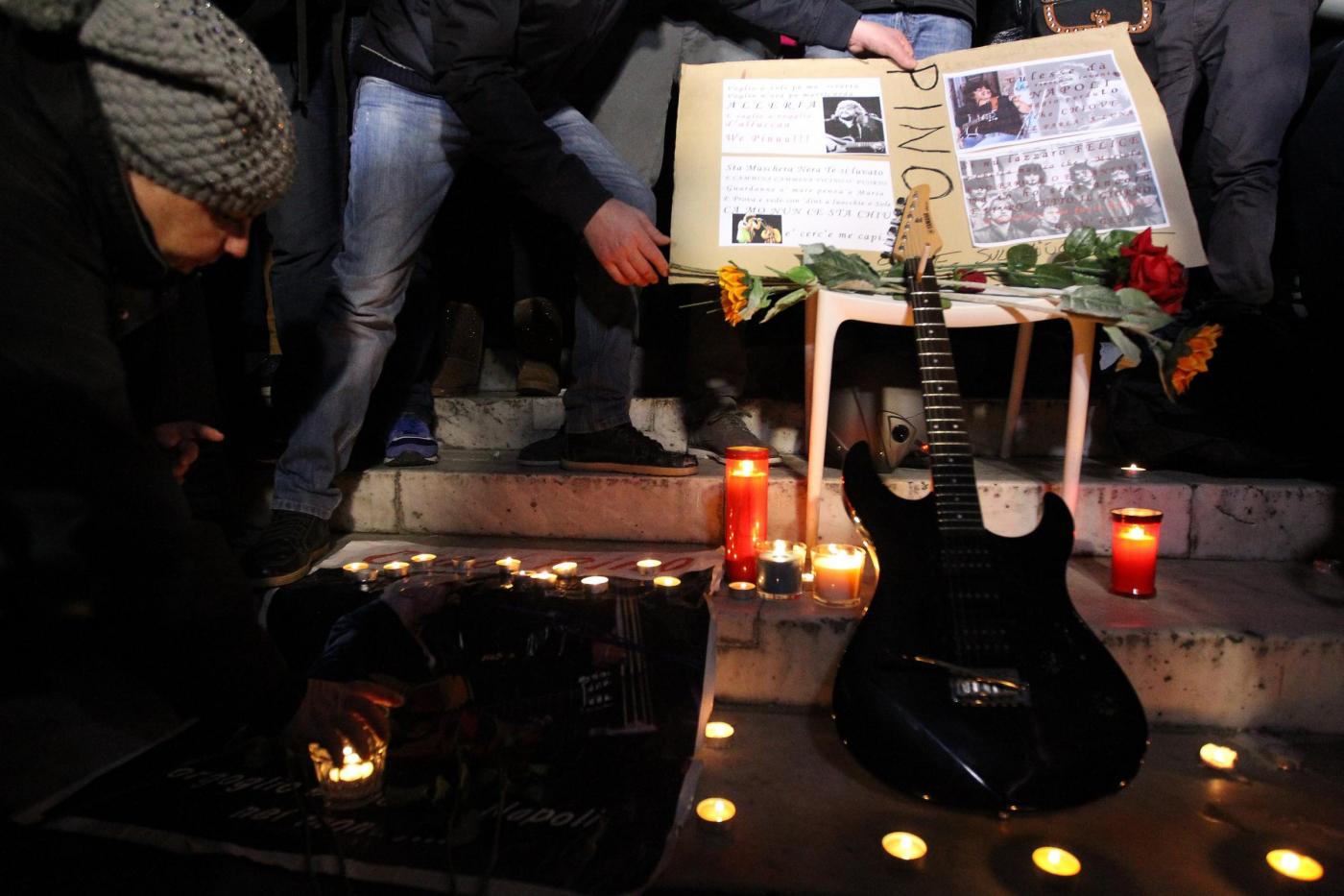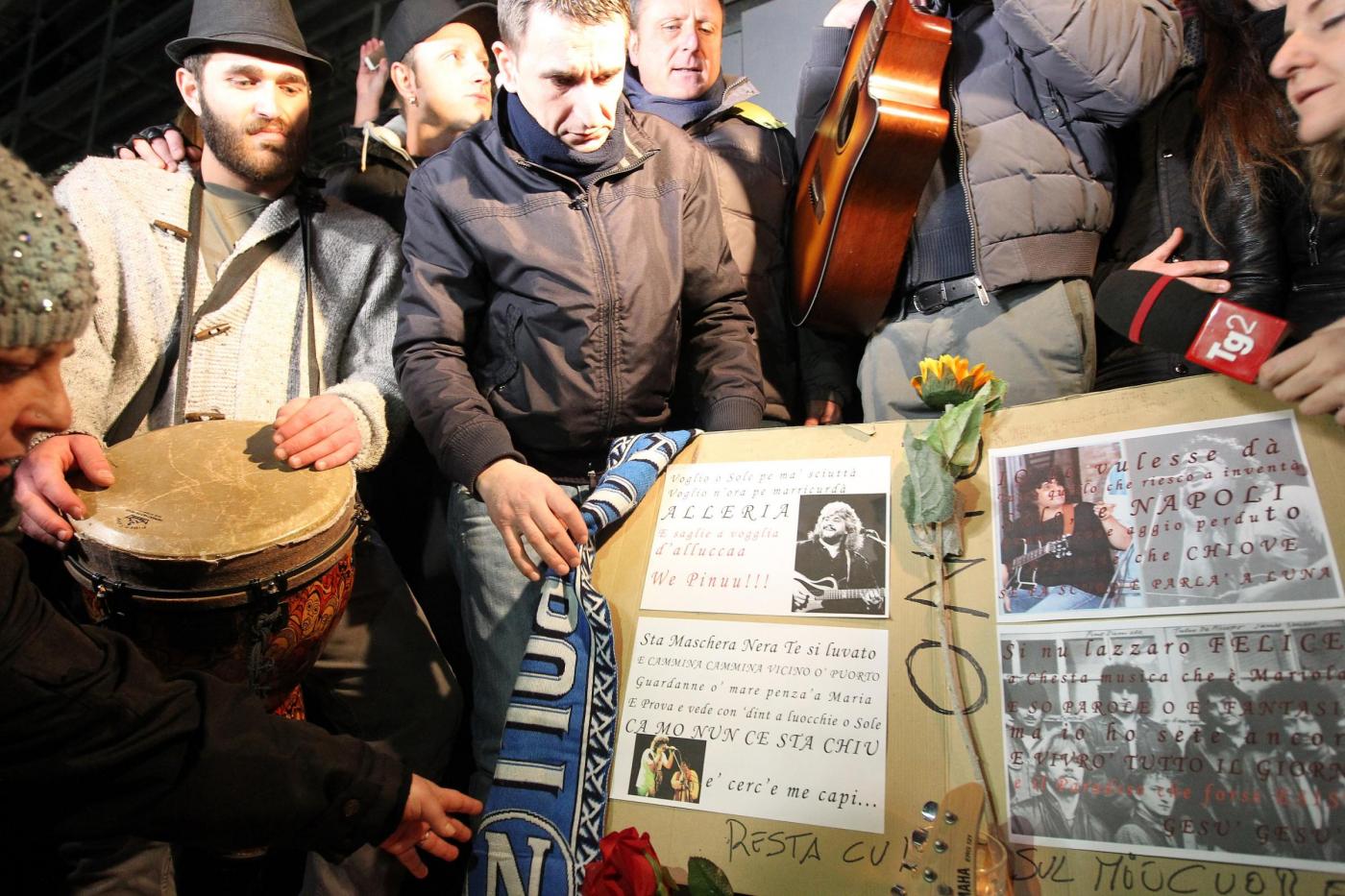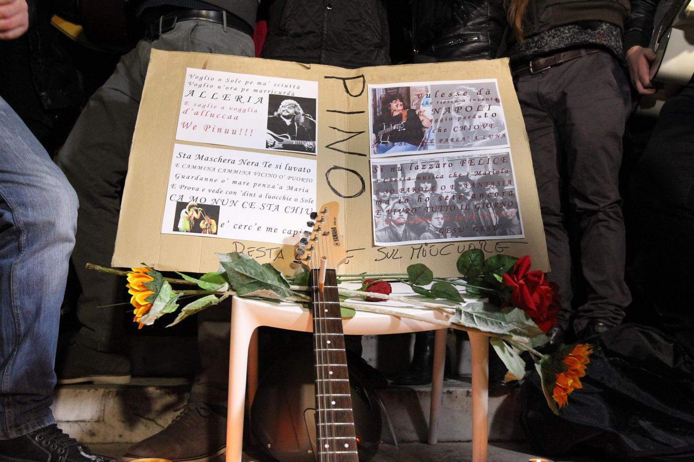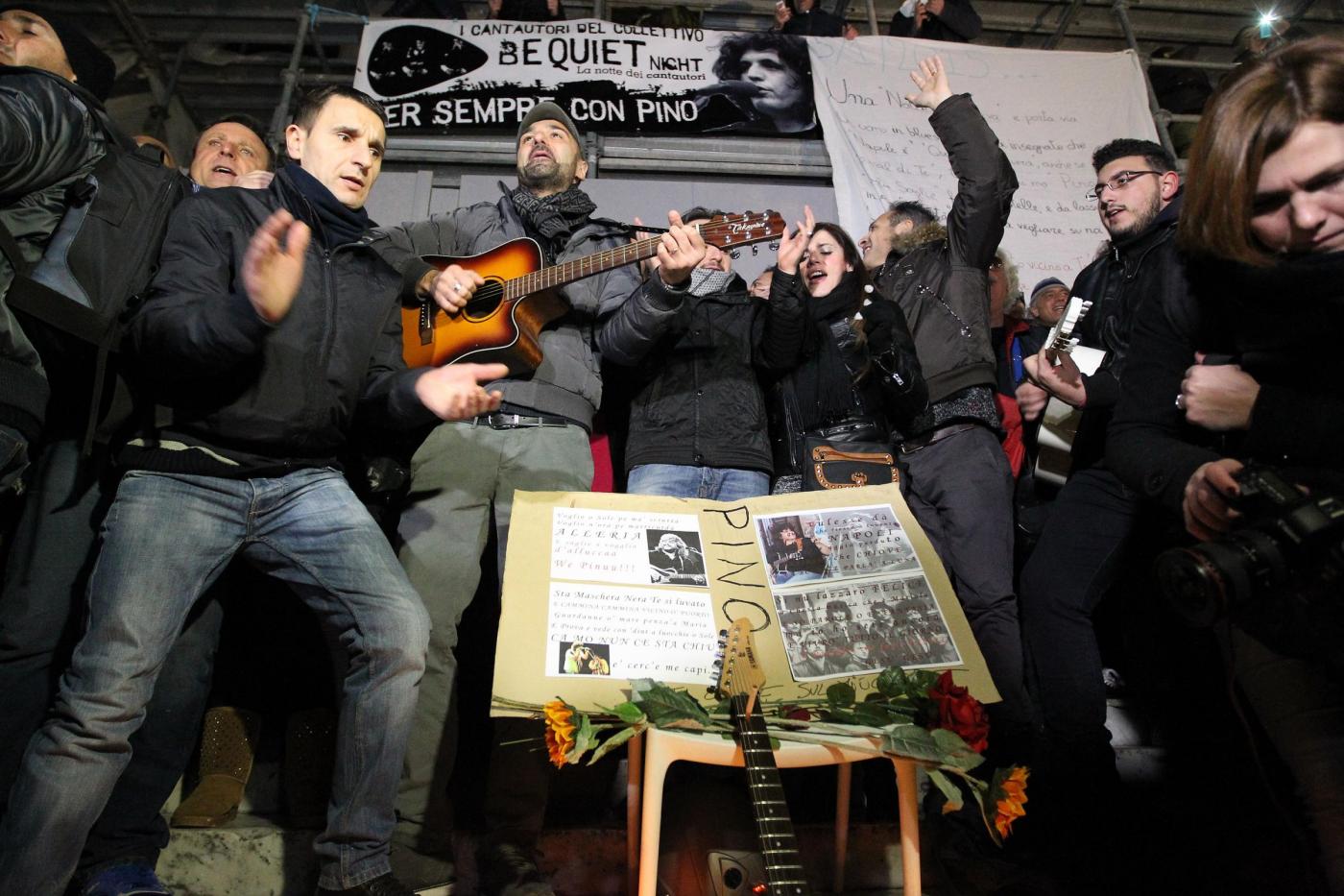 Una folla riunitasi per un flash mob che, partito dalla rete, ha richiamato nel luogo simbolo dei concerti dell’artista fan di tutte le età, da tutti quartieri della città. Perché non c’è nessuno, a Napoli, che non conosca almeno le sue canzoni più famose. Alla fine della manifestazione, il sindaco, Luigi de Magistris, presente in piazza, parla di ”centomila presenze” per un flash mob che, come dice, ”non aveva mia visto una partecipazione così grande”. Anche de Magistris sottolinea il dato generazionale: ”C’erano persone di ogni età”. E aggiunge: ”É un fatto molto significativo che si possano celebrare i funerali anche qui, l’abbraccio di stasera è stato unico; Napoli doveva dargli il saluto nella ‘sua’ piazza”. ”Stasera in piazza c’è stato l’orgoglio di essere napoletani e concittadini di Pino Daniele – afferma – Lui è nella carne di ogni napoletano, la sua musica attraversa ogni piazza, ogni vicolo della città”.