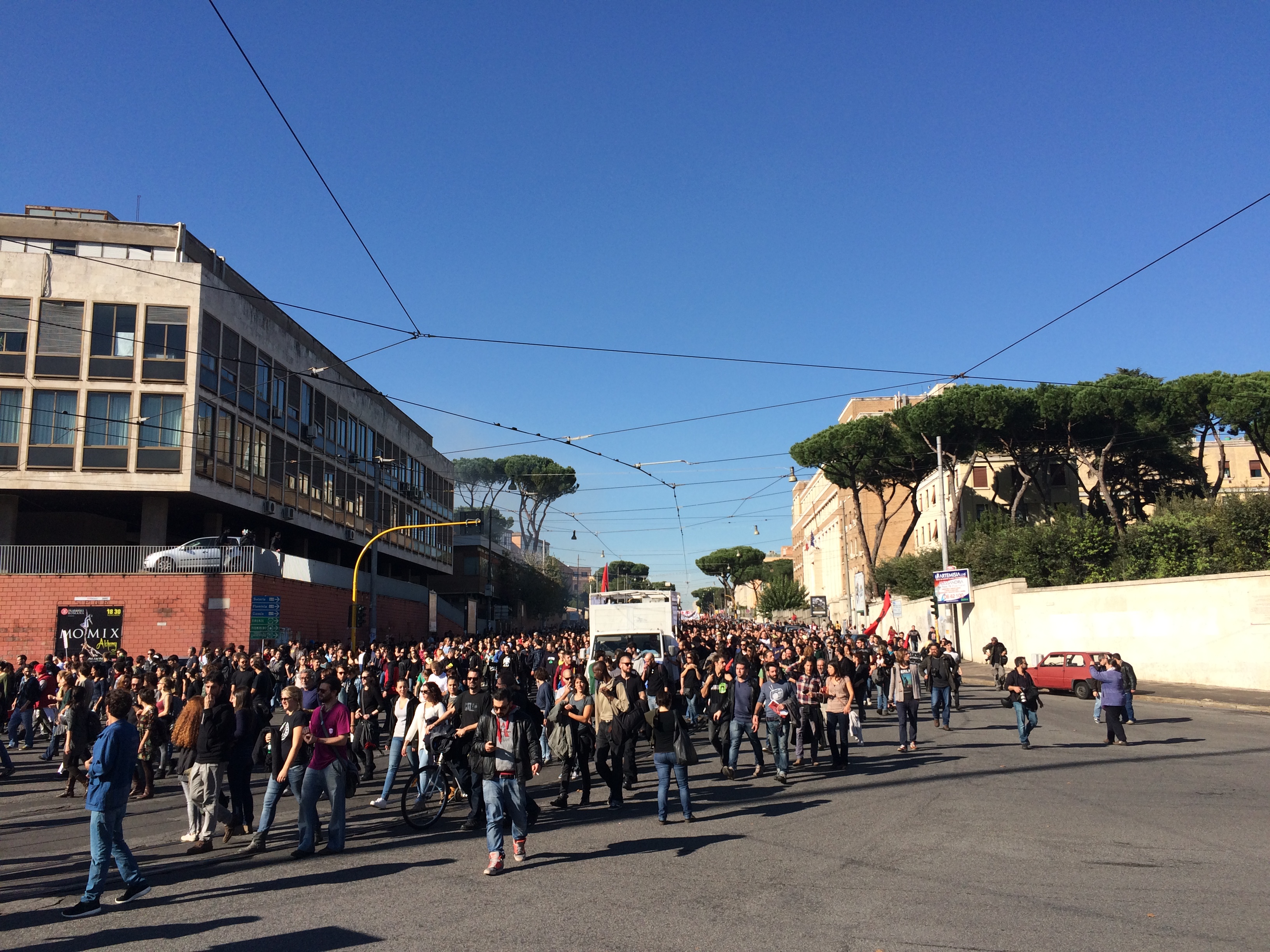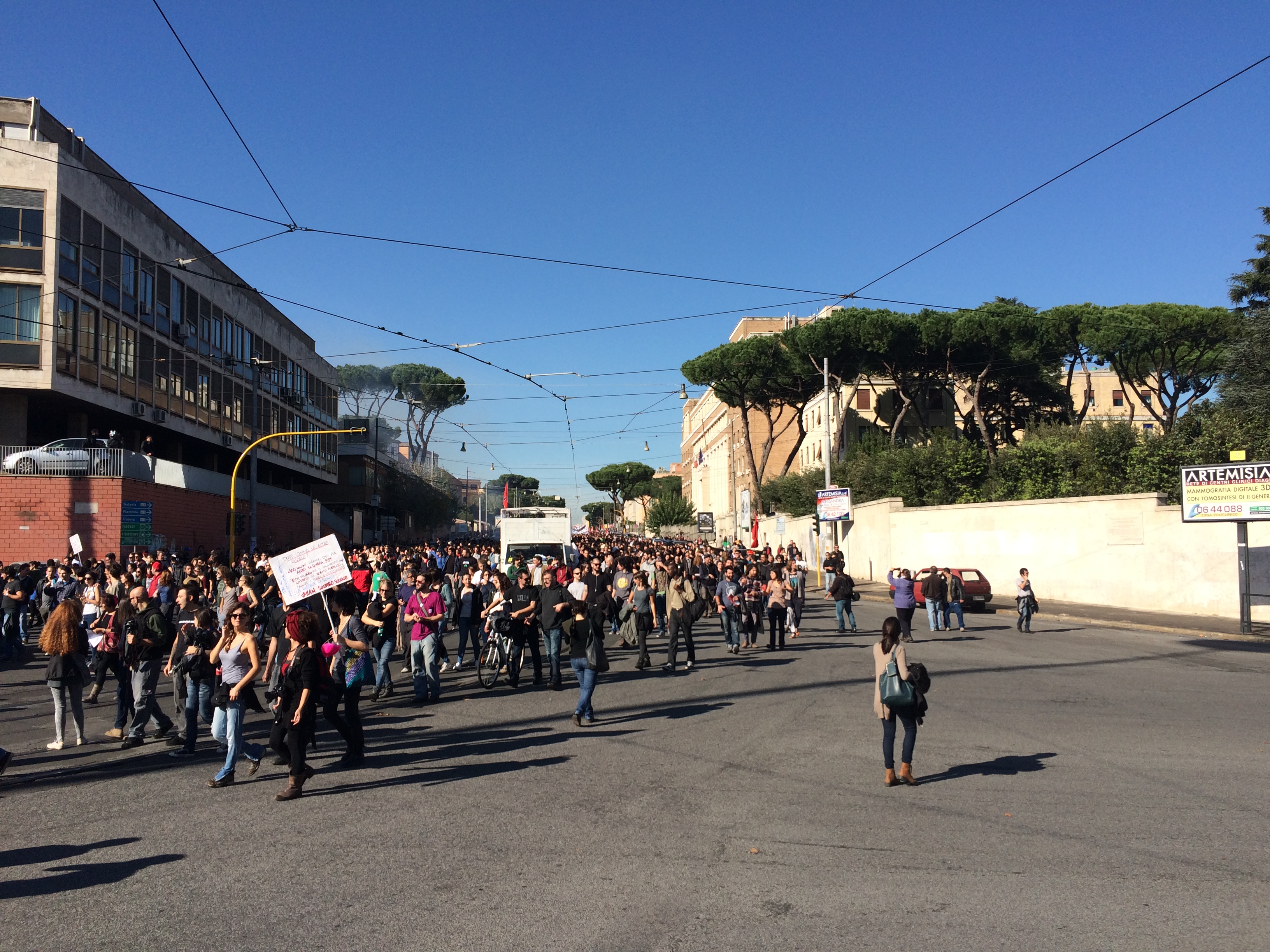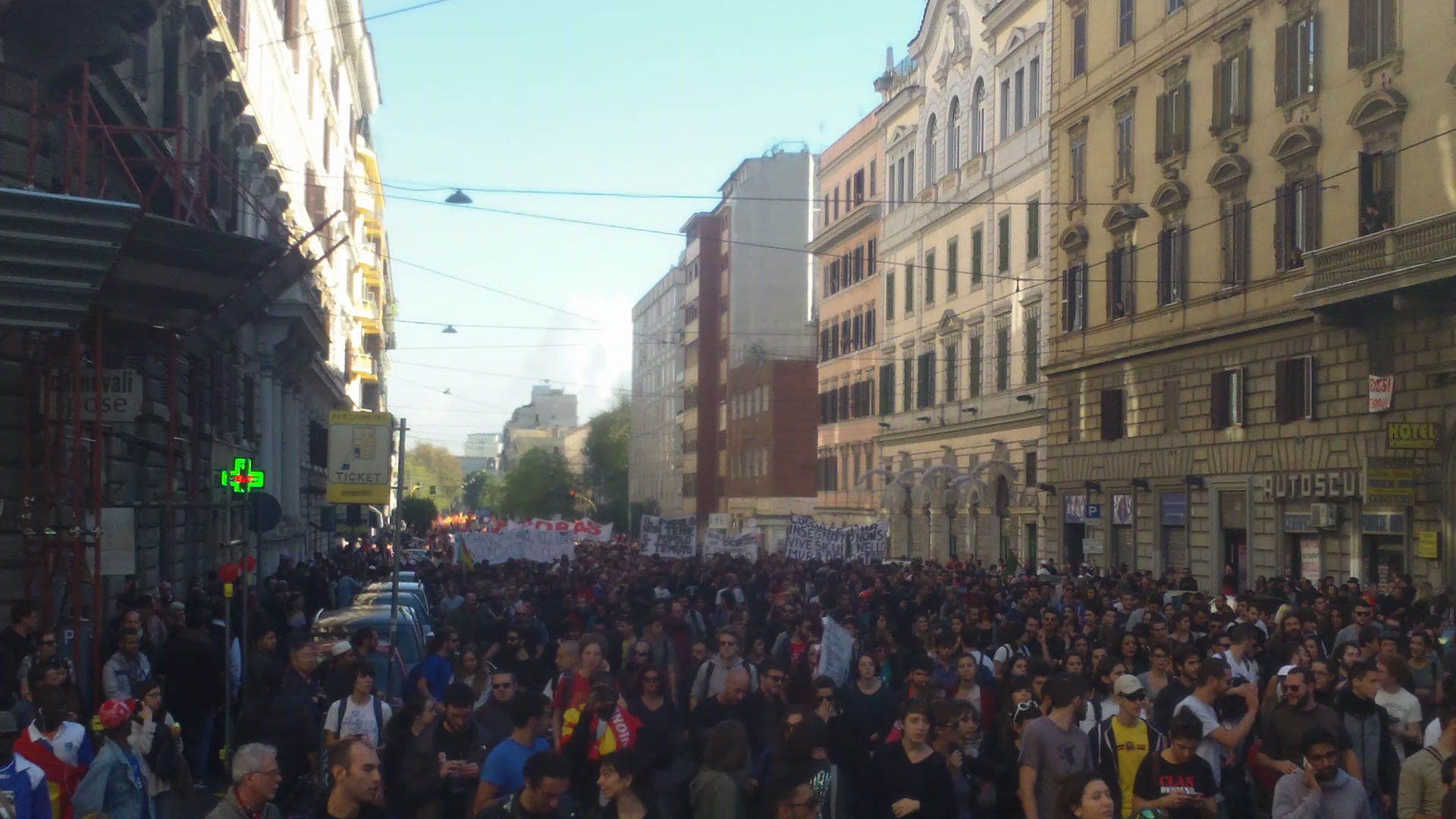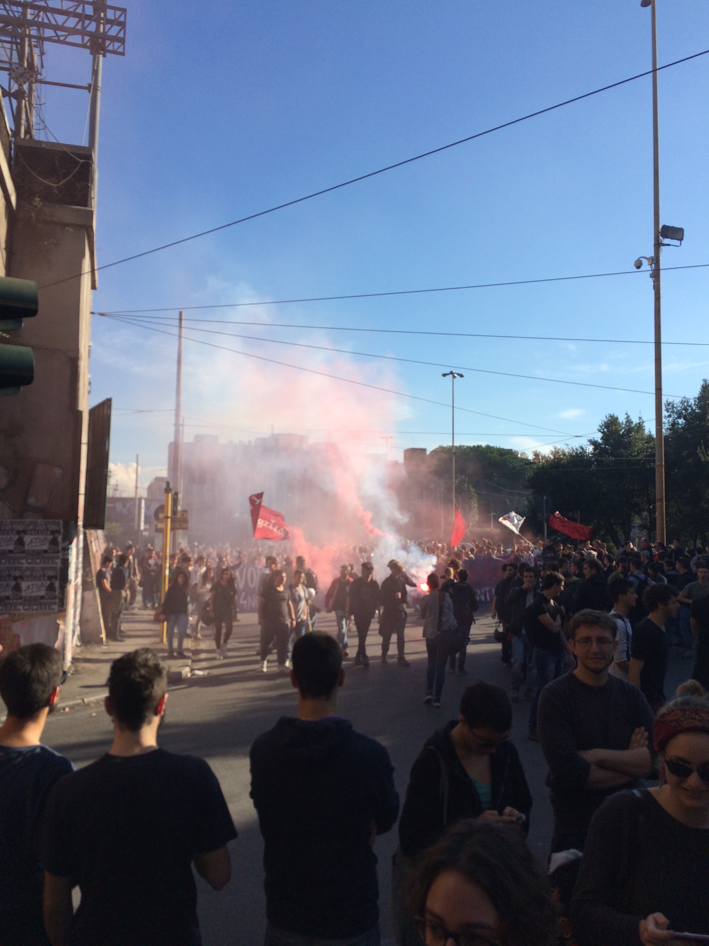 Il corteo all’angolo fra viale Regina Elena e via Tiburtina – VIDEO 1
