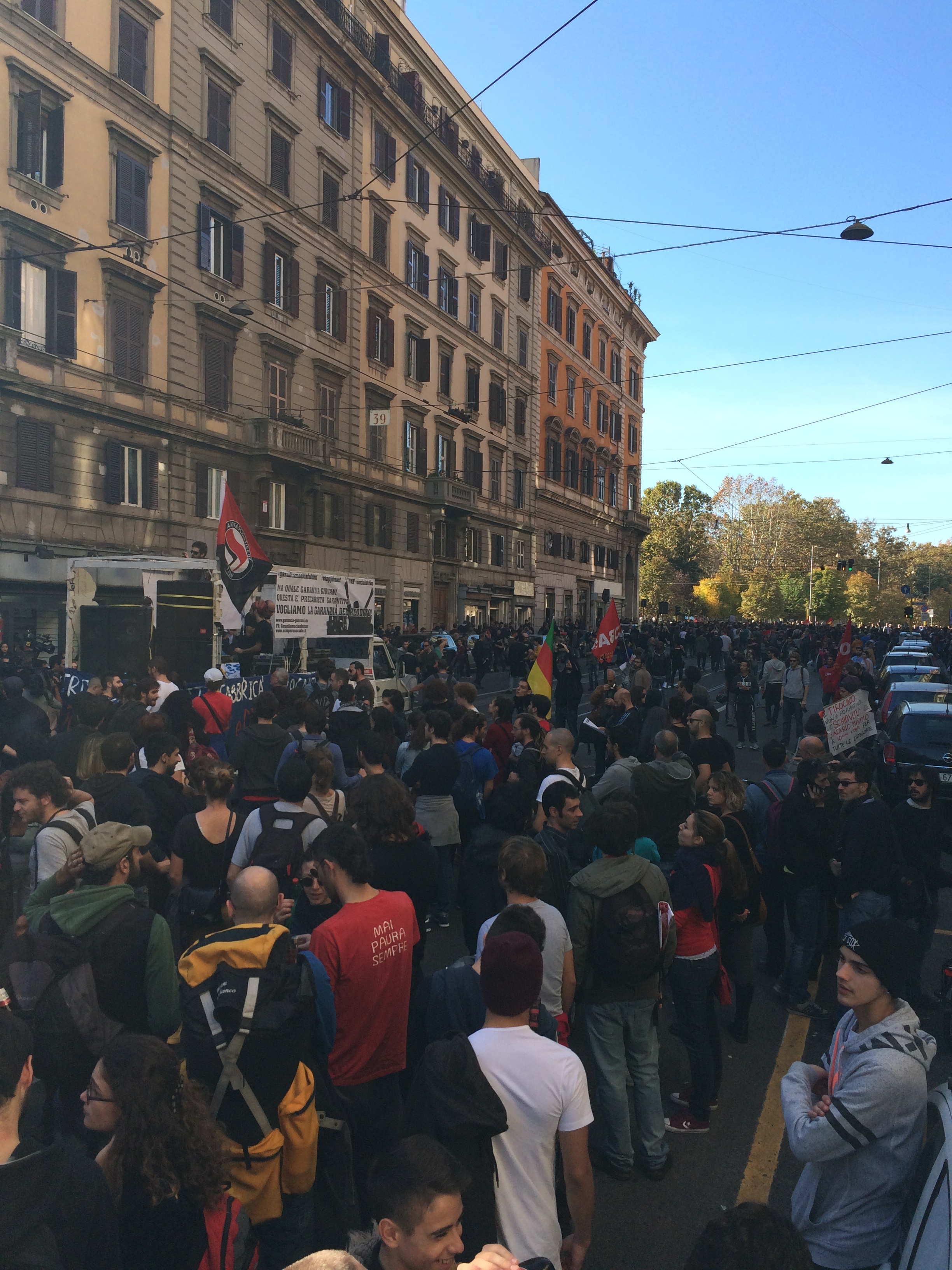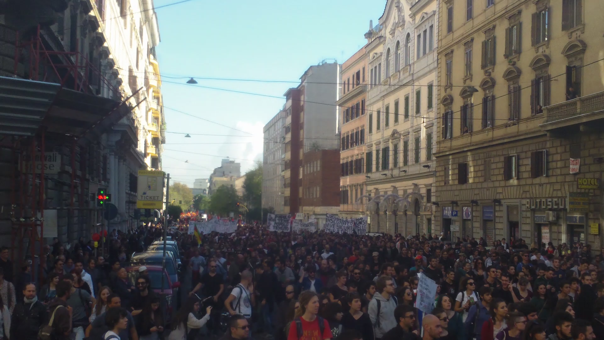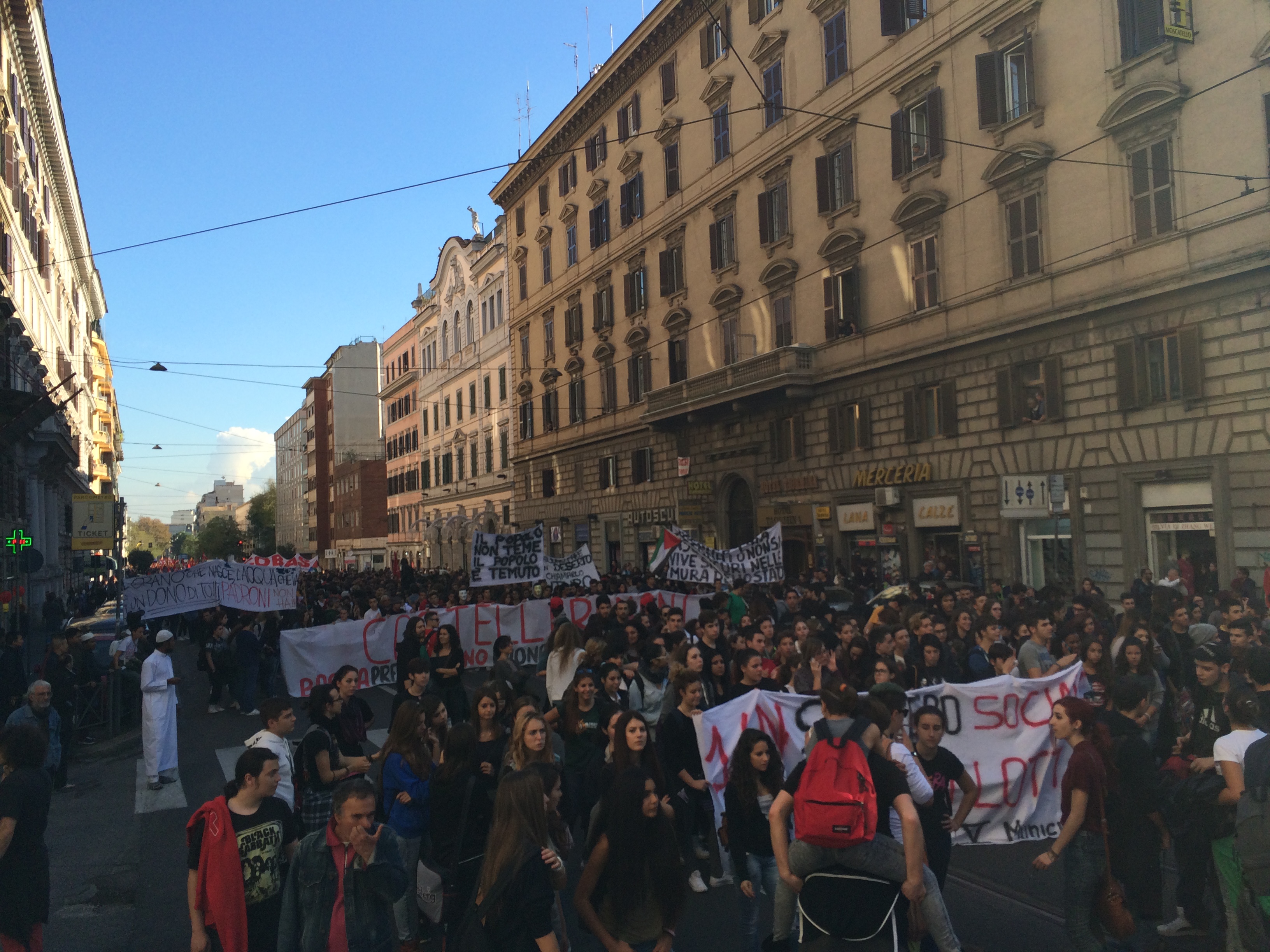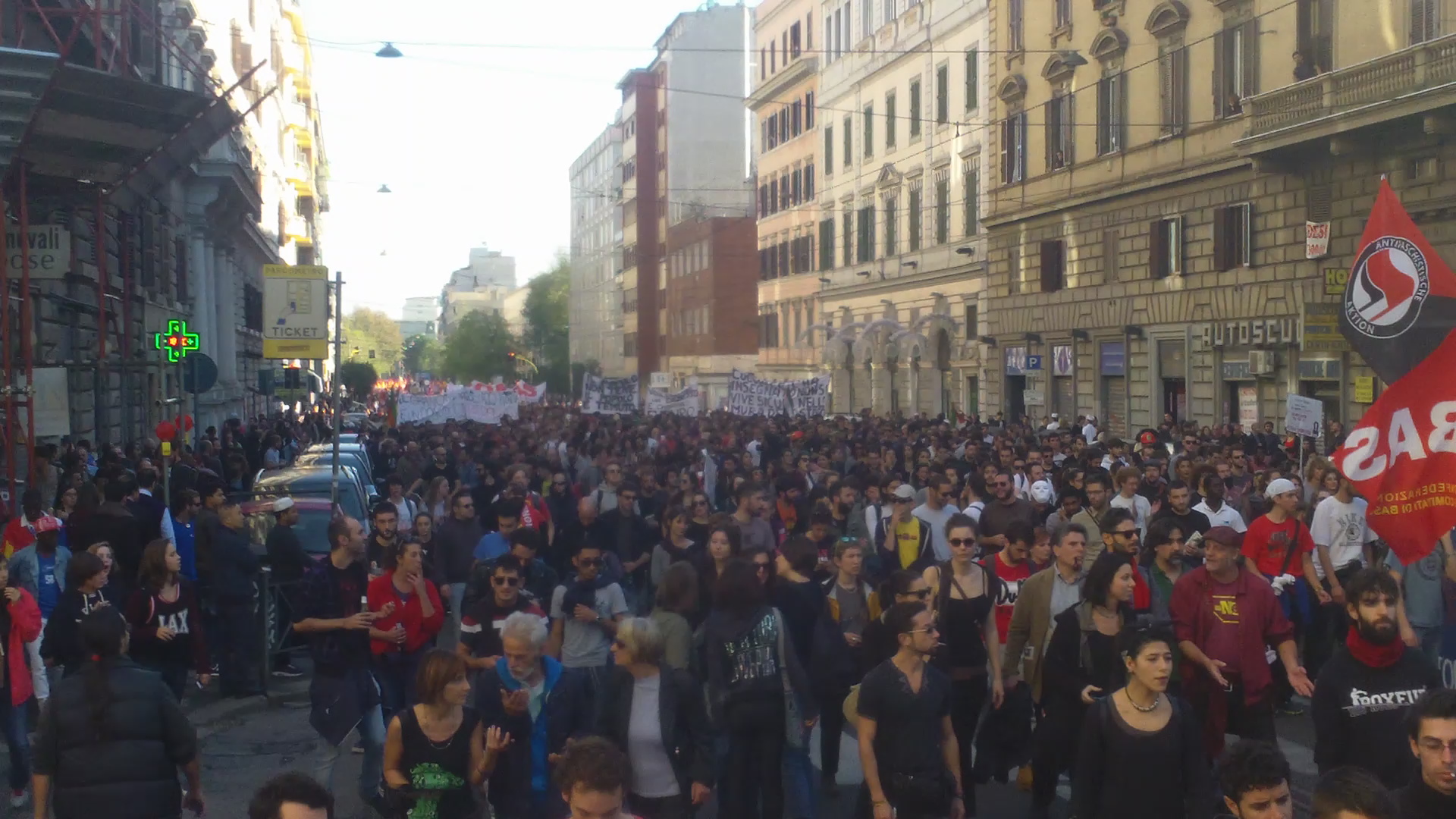 Il corteo all’angolo fra viale Regina Elena e via Tiburtina – VIDEO 1