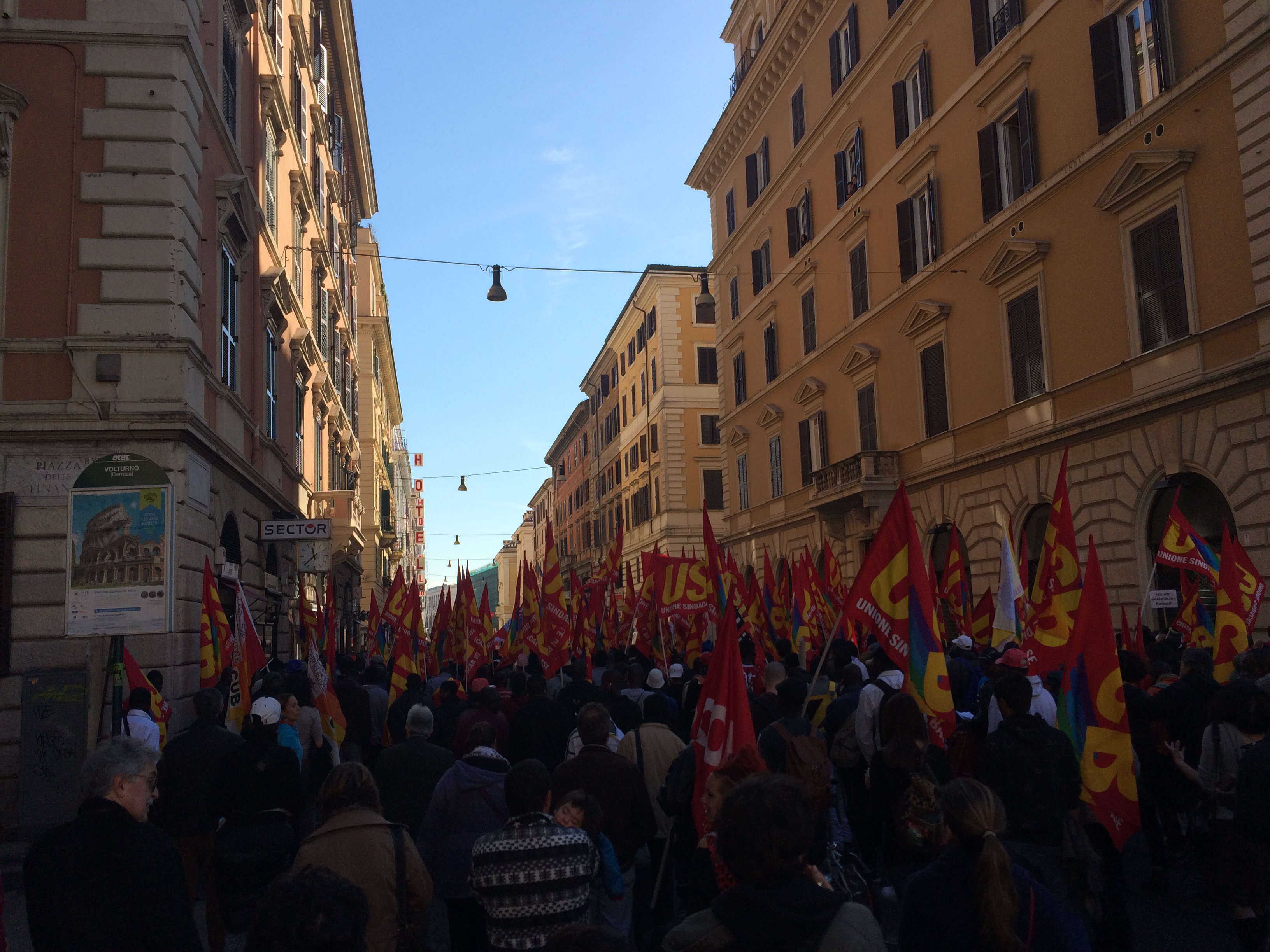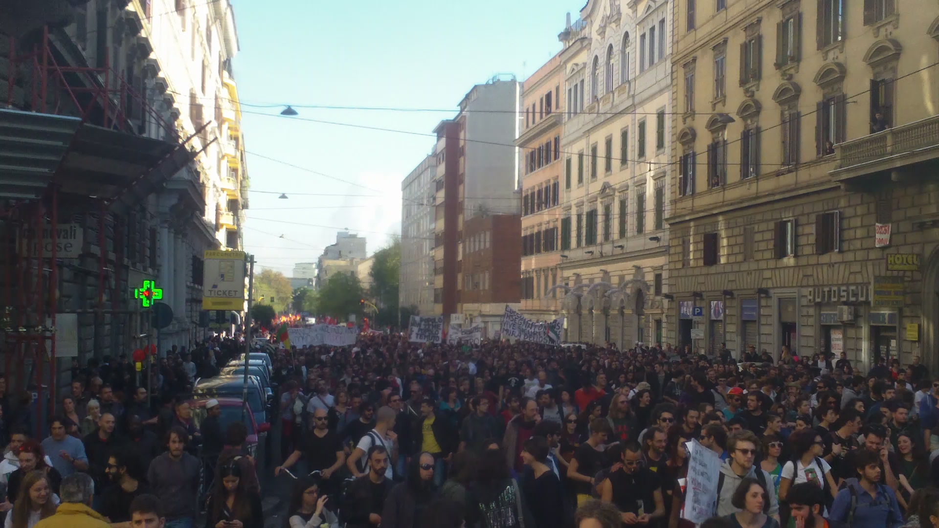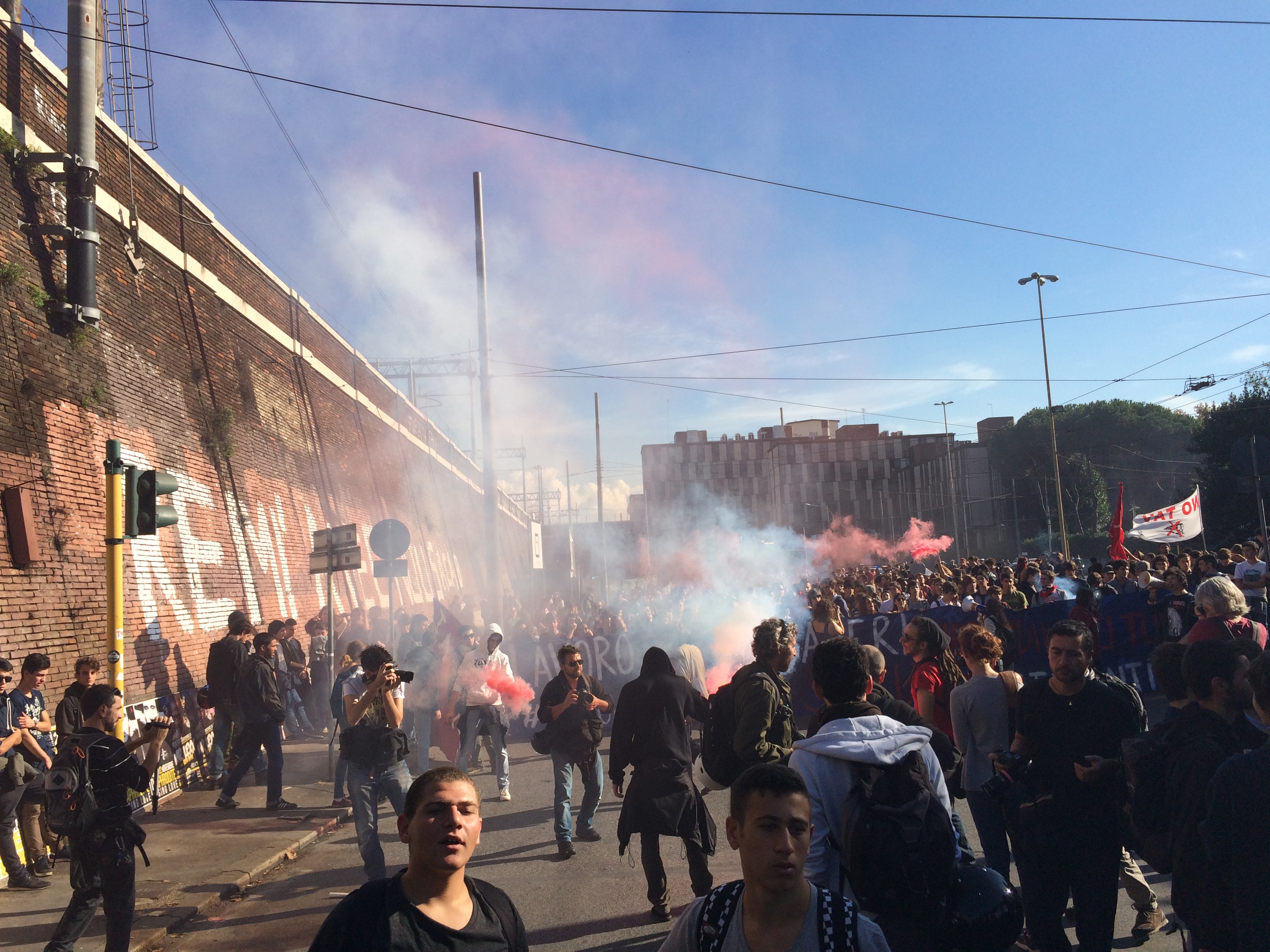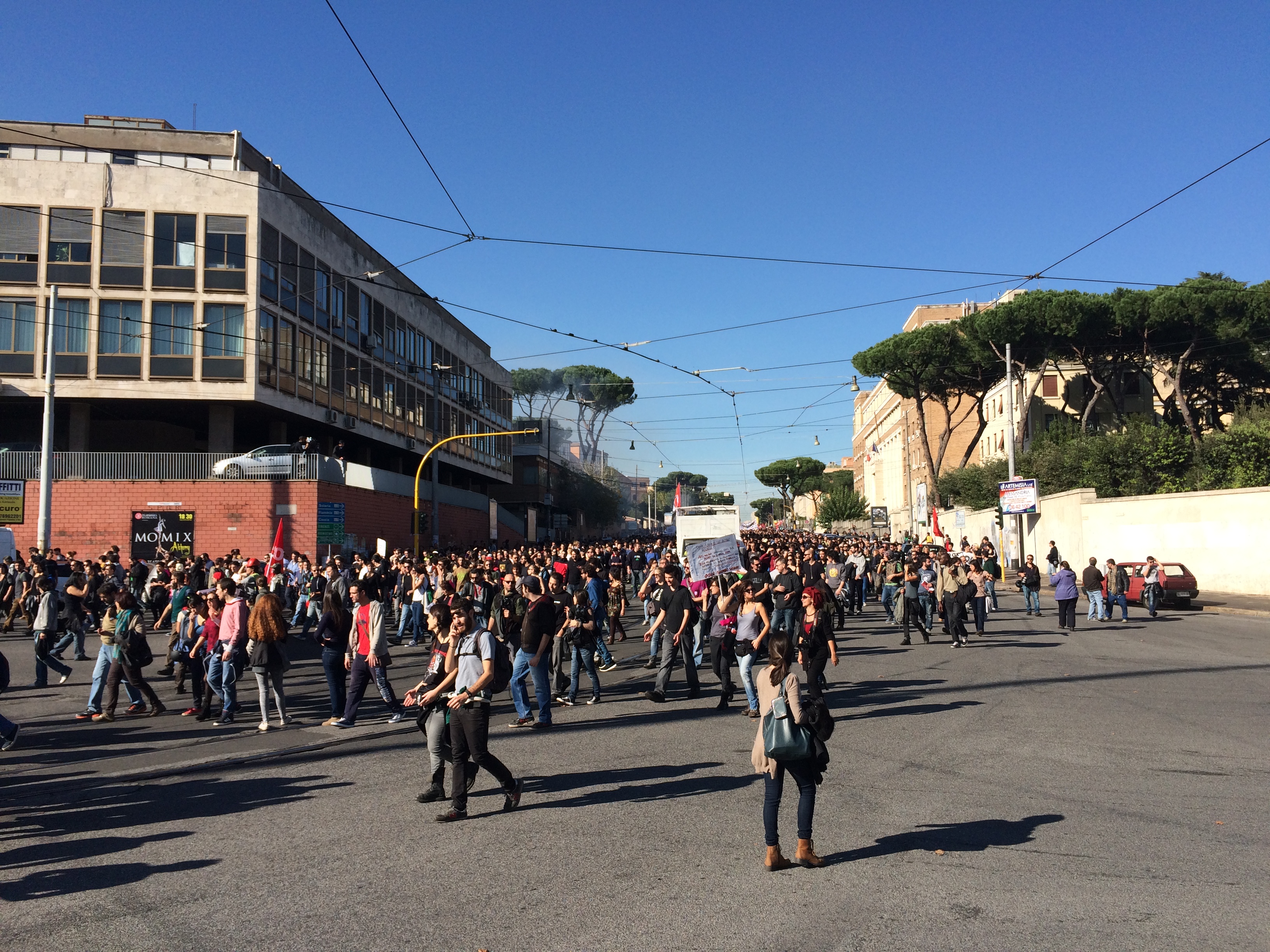 Il corteo all’angolo fra viale Regina Elena e via Tiburtina – VIDEO 1