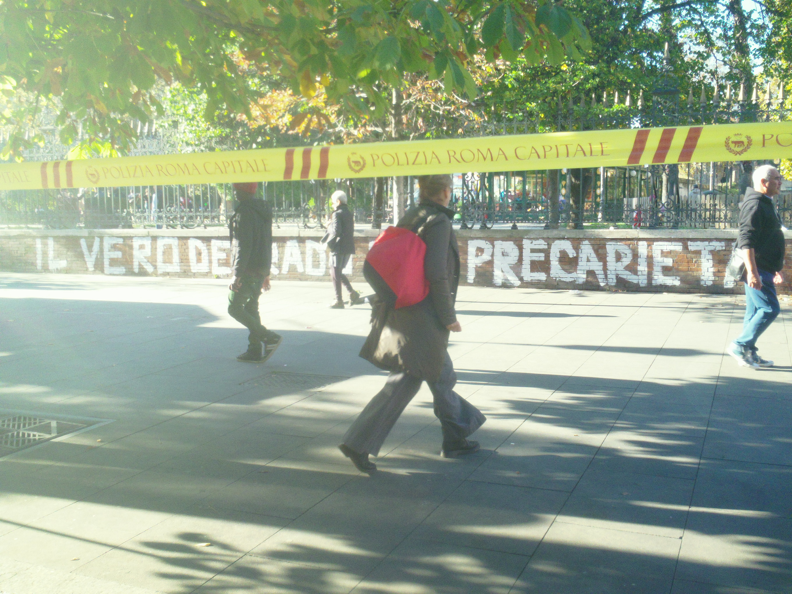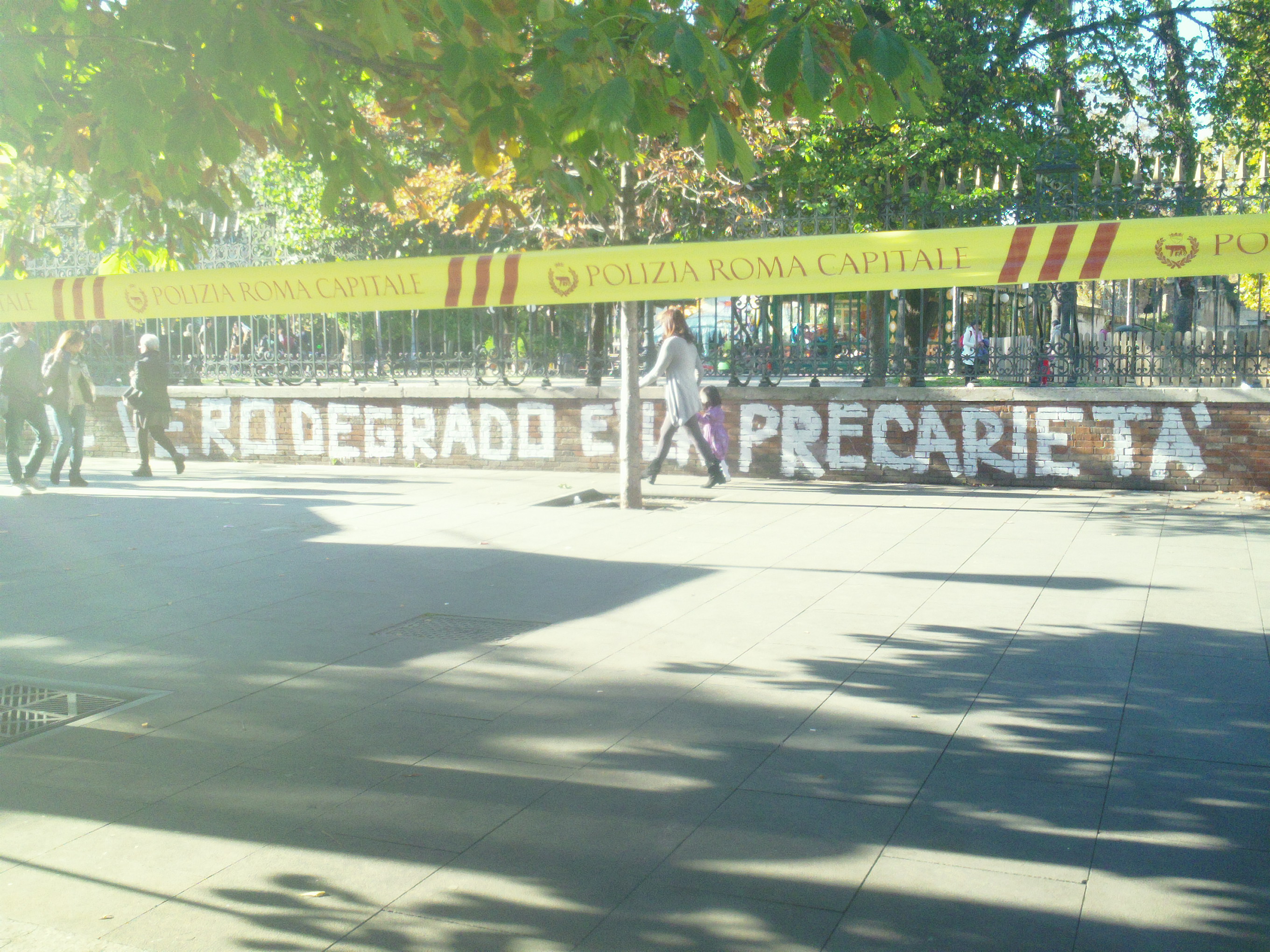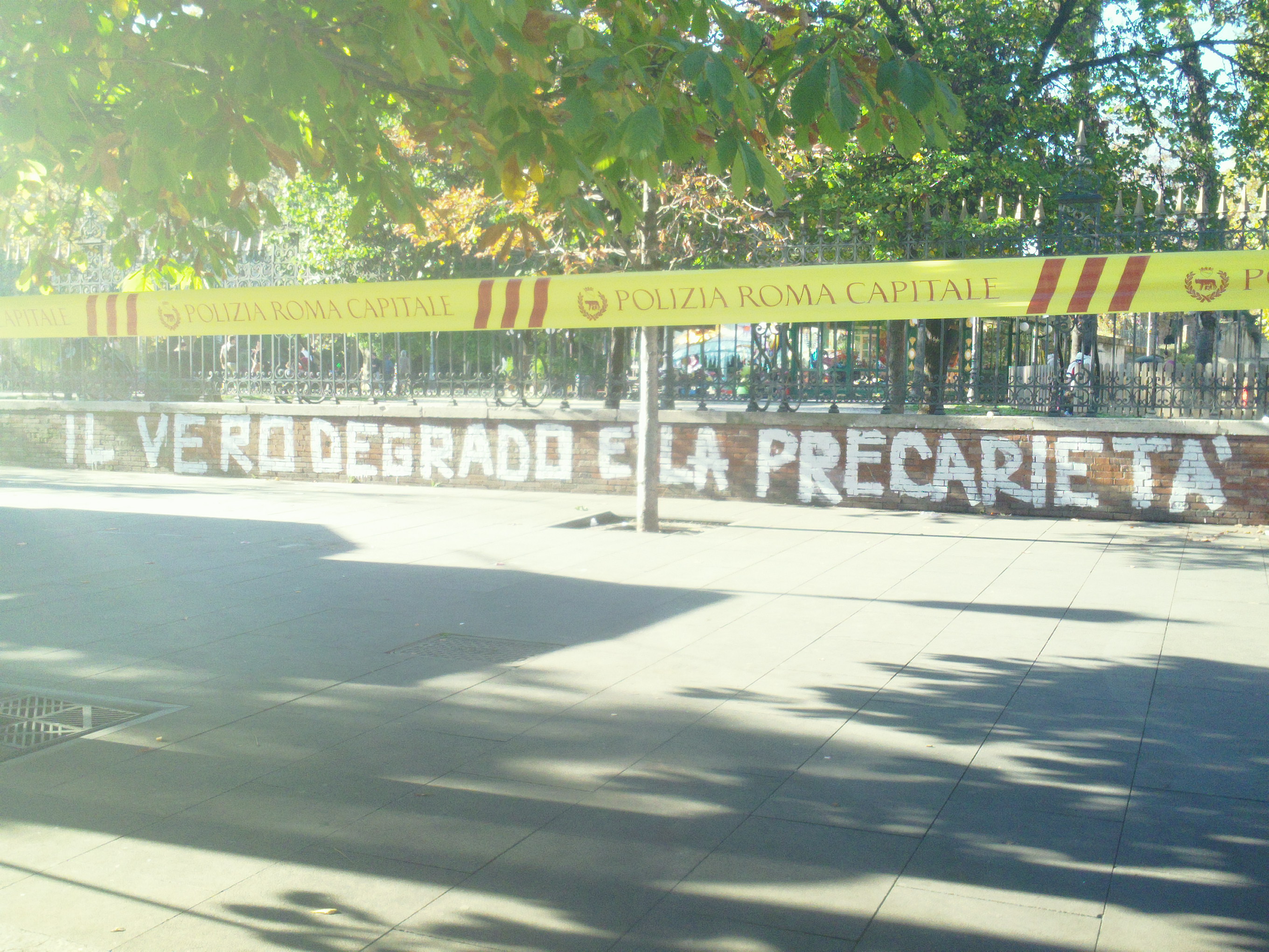 Scritta in piazza Vittorio: “Il vero degrado รจ la precarietร ”. E tutte le altre foto del corteo (Blitz quotidiano)