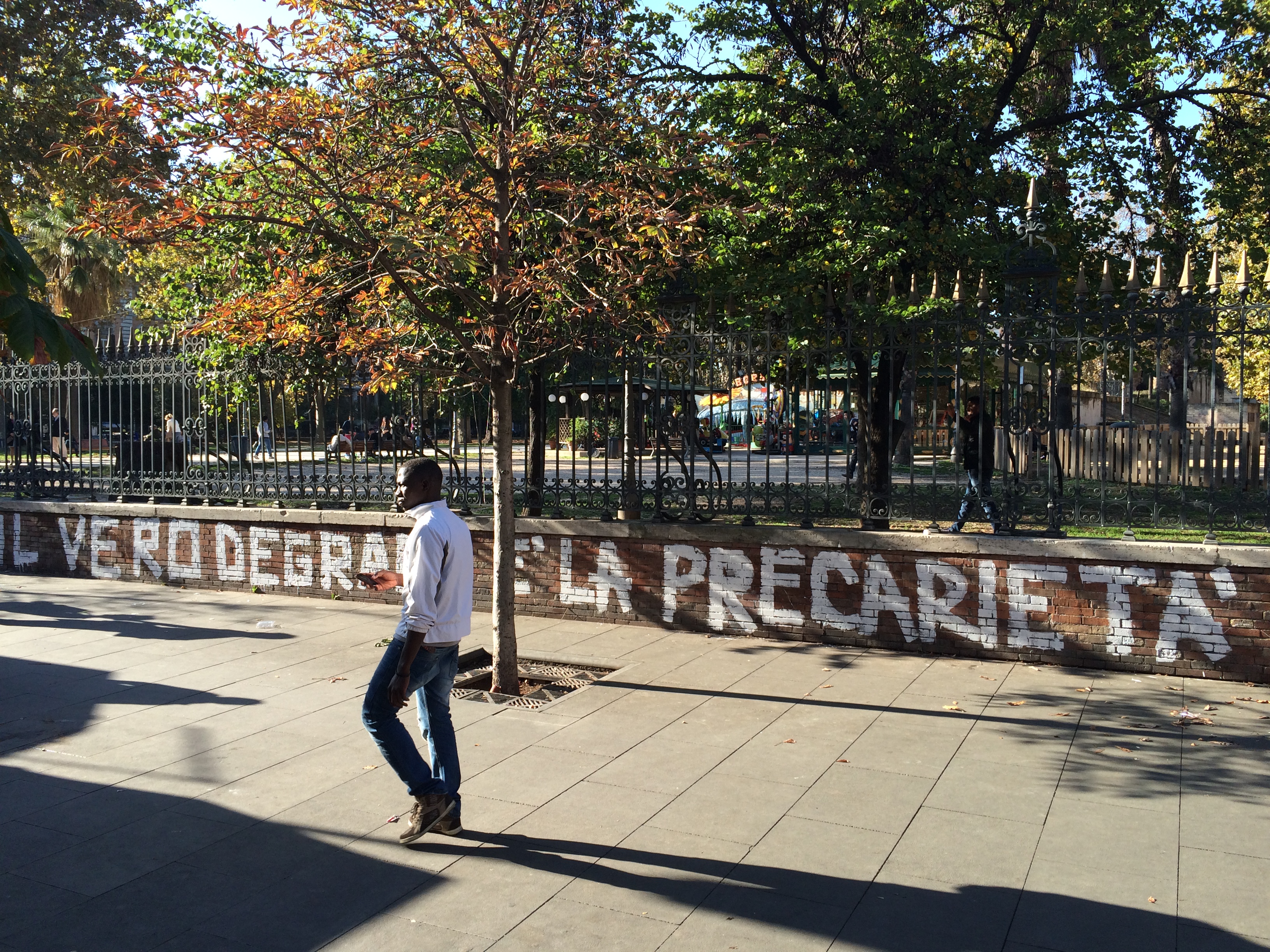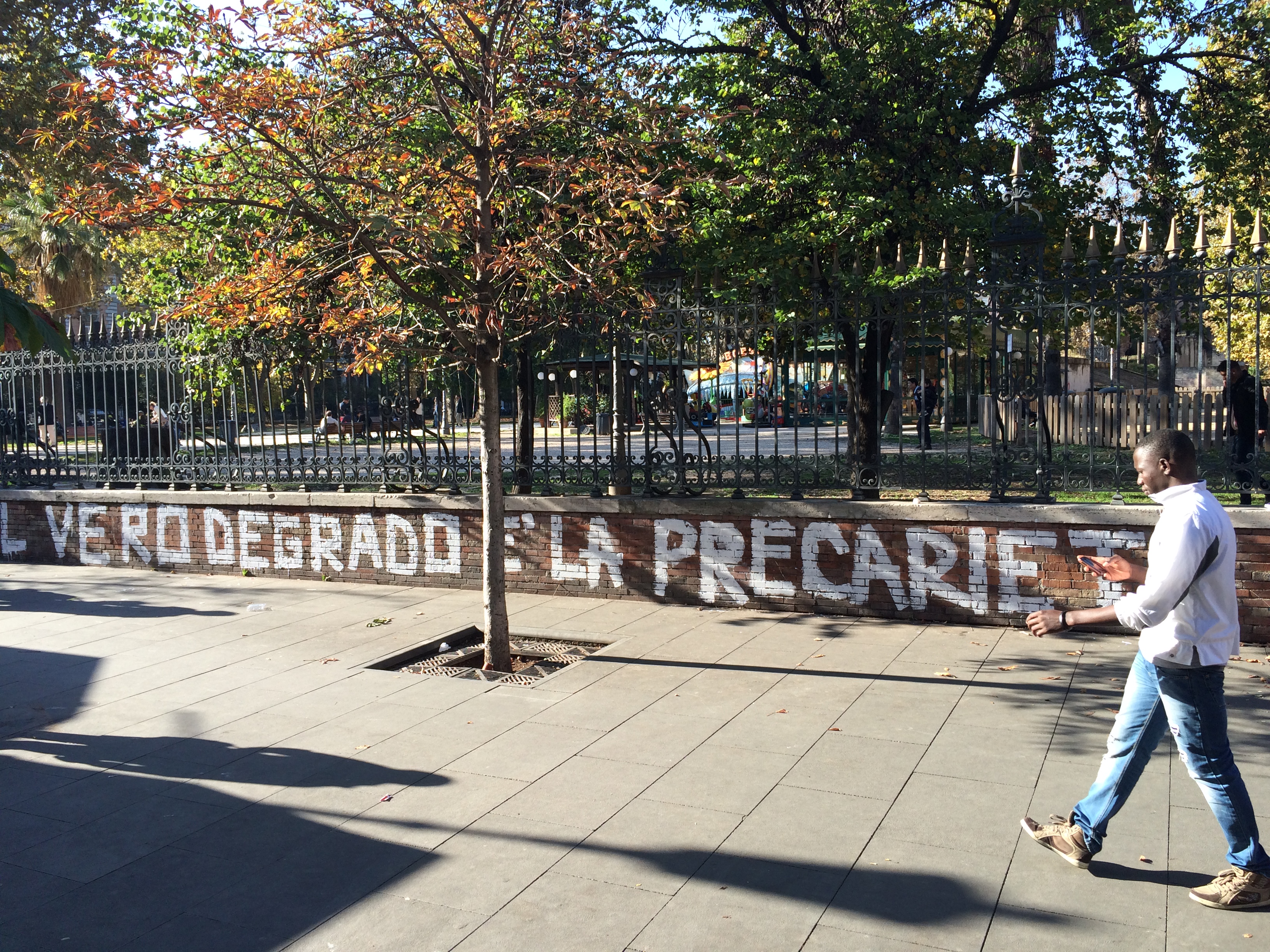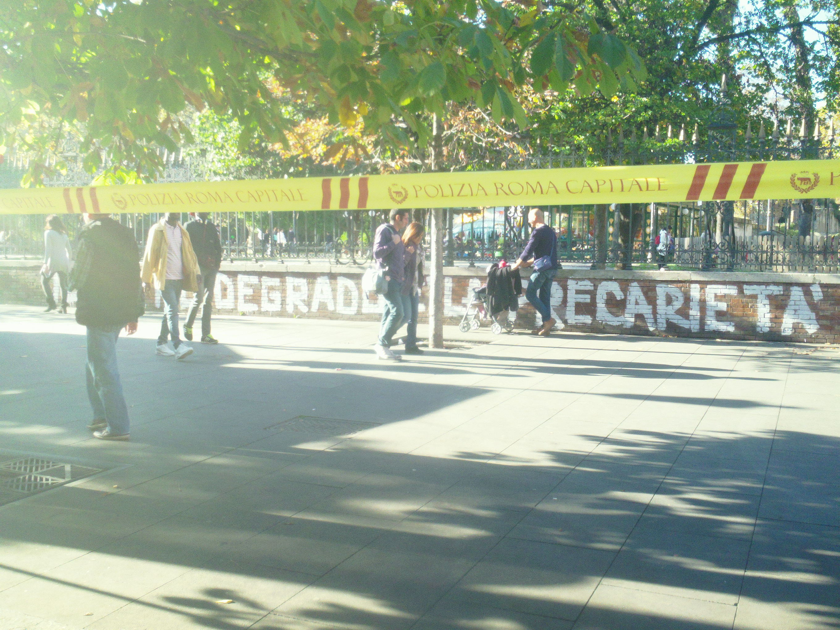 Scritta in piazza Vittorio: “Il vero degrado รจ la precarietร ”. E tutte le altre foto del corteo (Blitz quotidiano)