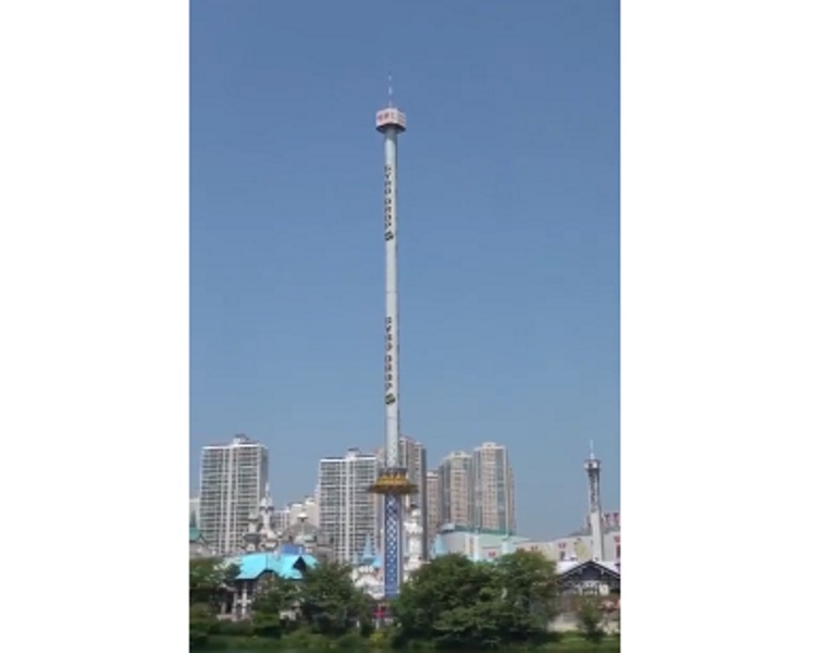 Un effetto decisamente esagerato, dato che la giostra, che esiste davvero, ha un funzionamento molto più semplice ma altrettanto da brividi: sale fino a un’altezza di 70 metri girando su sé stessa per permettere ai passeggeri di vedere il panorama per poi ricadere bruscamente fino a terra e si trova nel Lotte World.