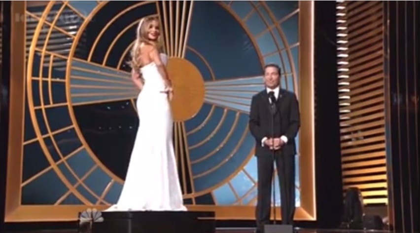 LOS ANGELES – Sofia Vergara in un abito bianco mozzafiato esibita come una bambola su una pedana rotante sul palco degli Emmy Award 2014. Questa la gag dell’attrice e star di Modern family insieme a Bruce Rosenblum, Ceo dell’academy, che ha sollevato polemiche. Le donne di tutto il mondo sono insorte, definendo sessista la gag e in molti l’hanno criticato, paragonandola anche all’esibizione degli schiavi.