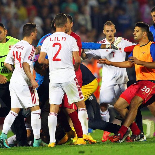 La popolazione del Kosovo e’ per oltre il 90% di etnia albanese. A cio’ si aggiungono i timori della Serbia per il progetto presunto di una ‘Grande Albania’, che raggruppi le comunita’ albanesi oltre che dell’Albania anche di Kosovo, Montenegro e Macedonia. Alla luce di tutto ciò, non si capisce come mai, al momento del sorteggio di queste eliminatorie, l’Uefa non si sia mossa per evitare che queste due nazionali venissero inserite nello stesso girone, cosa che l’ente calcistico europeo ha invece fatto per depotenziare altre situazioni a rischio come quelle tra Spagna e Gibilterra e Russia ed Ucraina.