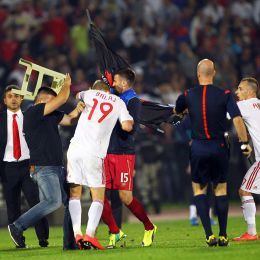 BELGRADO, SERBIA – Un drone in campo (telecomandato dal fratello del premier albanese), bandiere per il “Kosovo libero” e rissa in campo: Serbia-Albania da partita di calcio si è trasformata in una “battaglia campale”. A Belgrado si giocava per le qualificazioni del Gruppo I agli Europei di calcio del 2016, e’ stata sospesa al 41′ del primo tempo per gravi incidenti avvenuti dentro e fuori il terreno di gioco L’interruzione del match e’ avvenuta sul risultato di 0-0, e dopo un’attesa di oltre 50 minuti, lo speaker dello stadio del Partizan ha annunciato ufficialmente che la partita non sarebbe ripresa per motivi di sicurezza.
