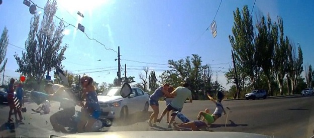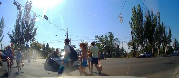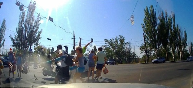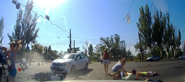 ODESSA(UCRAINA) – Due ragazze ad Odessa in Ucraina, viaggiano sullo scooter senza indossare il casco protettivo. Un’auto arriva e le due ragazze che stanno correndo troppo, non riescono ad evitare l’impatto.