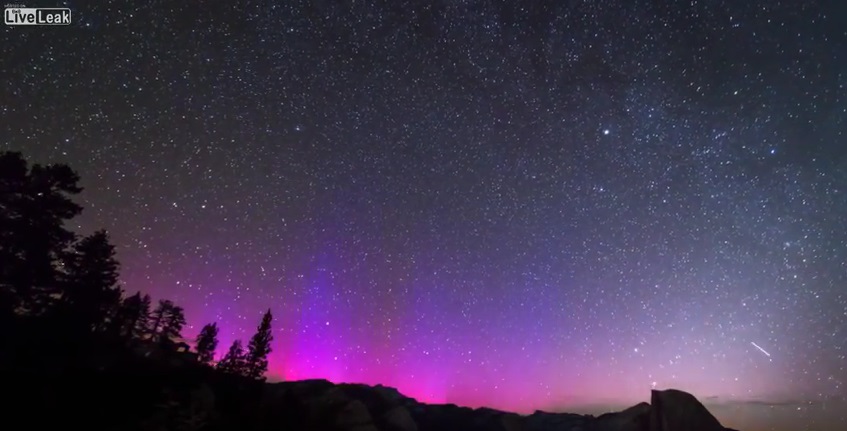Il risultato? Si passa dall’incendio spento con un aereo cisterna DC-10, alla visione di una spettacolare via Lattea, attraversata da meteore fino anche all’aurora boreale, un evento molto raro per la posizione di Yosemite.