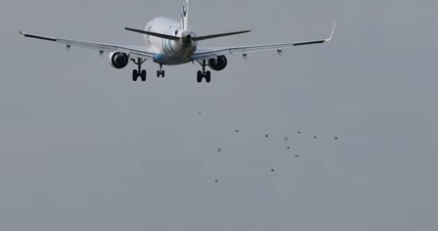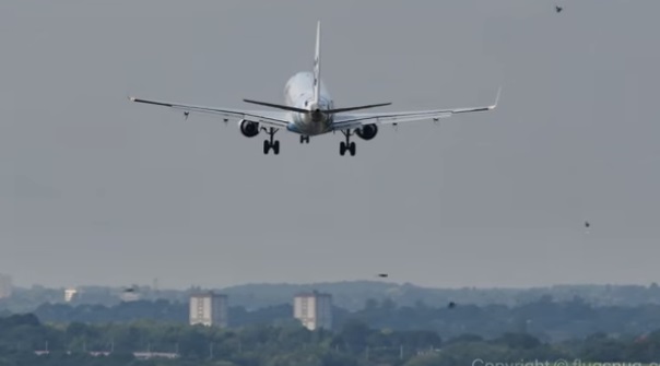 MANCHESTER – Un aereo, in fase di atterraggio, incappa in uno stormo di uccelli, una delle circostanze più pericolose quando i velivoli si trovano in decollo o in atterraggio. Ad avere la peggio, però, sono i volatili che stramazzano al suolo colpiti dalle ali di un volo Flybe in atterraggio all’aeroporto di Manchester.
