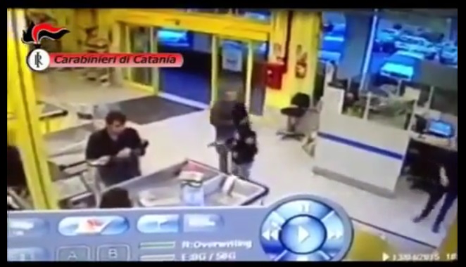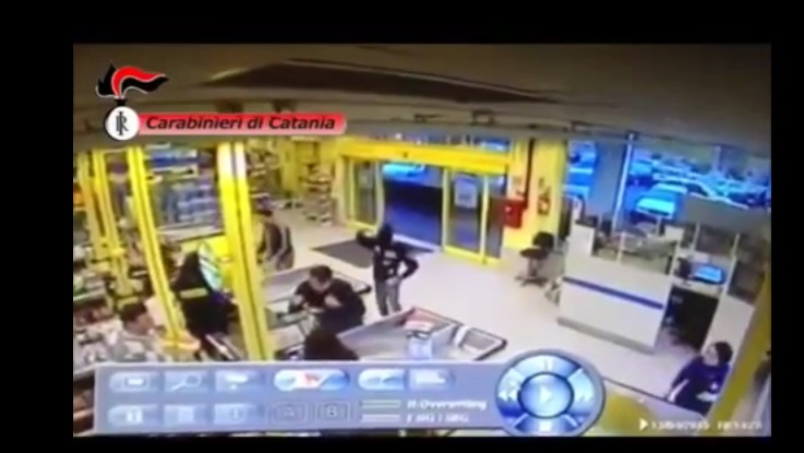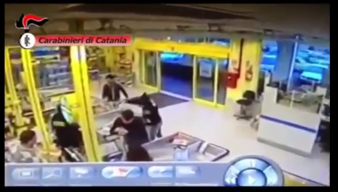 E’ il 14 aprile e il giovane rapinatore di 24 anni entra nell’Euro spin di Paternรฒ, in provincia di Catania, col volto celato da un passamontagna e pistola alla mano. Il rapinatore chiede alla cassiera l’incasso, ma proprio fuori dal supermercato un carabinieri fuori servizio stava entrando a fare la spesa. Il carabiniere, come si vede nel video, ha prima bloccato Di Fazio, poi l’ha disarmato e lo ha messo ko.