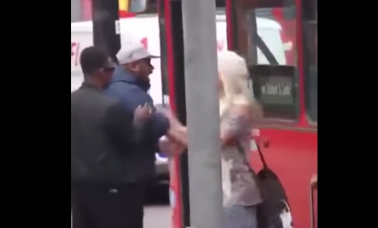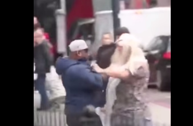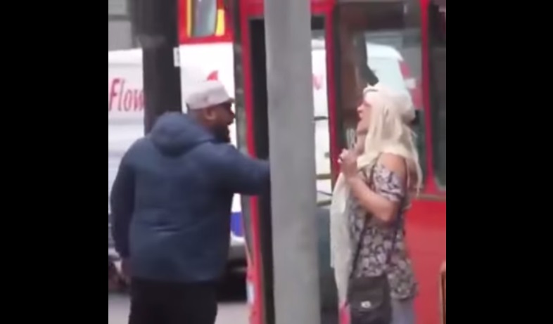 ROMA – Un bullo inizia a litigare con una donna. Quest’ultima in realtà è un attore travestito da donna che sta fingendo e così reagisce rispondendo a brutto muso al ragazzo che la sta prendendo a parolacce.