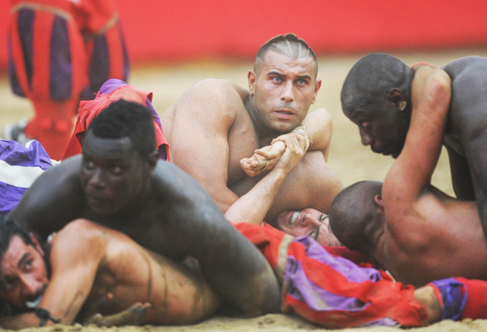 Un match acceso – secondo la cronaca di Firenze Today – già dopo il primo minuto 2 sono state le espulsioni: Bonfiglio, di Santo Spirito, e Albano Nesi dei Verdi. In totale però le espulsioni sono state 4: 3 per i Verdi e 1 per i Bianchi. Il San Giovanni va in vantaggio dopo circa 6 minuti di gioco, i Bianchi cercano di difendersi e per i primi 20 minuti lo fa bene. Poi arrivano le cacce di Selvaggi e di Rinaldi e i Bianchi sono avanti di due cacce e mezza, i Verdi con una sola mezza caccia iniziano a sentire il peso della sempre più vicina sconfitta. Al 40′ e 47′ poi le ultime due cacce, quelle che chiudono la partita. Come spesso accade, sull’ultimo punto dei bianchi si accende una piccola rissa. (foto Ansa).