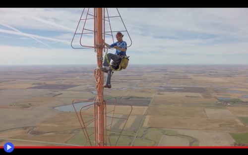 SIOUX FALLS (SUD DAKOTA, STATI UNITI) -Kevin Schmidt lavora per la Sioux Falls Tower and Communications, azienda del Sud Dakota che si occupa della gestione delle torri radio. Kevin, dal novembre scorso è diventato una piccola star del web. Un suo video in cui lo si vede all’opera, mentre scala una torre aòta 450 metri per cambiarne la lampadina è diventato virale raccogliendo più di 3 milioni e 600mila clic.
